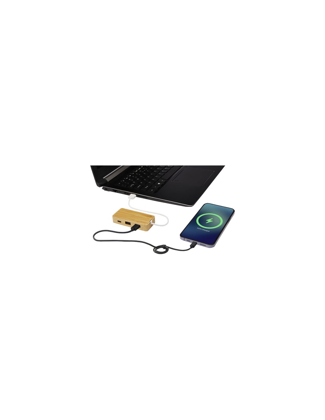 Hub USB 2.0 in bambù con 2 porte USB-A e 1 porta per USB Tipo-C. Sistemi operativi compatibili: Windows Vista, Windows XP, Windows Me, Win2000, Windows 7, Windows 8, Windows10, Mac OS X v10.8. Fornito in confezione regalo con manuale di istruzioni (entrambi realizzati con materiali ecosostenibili).