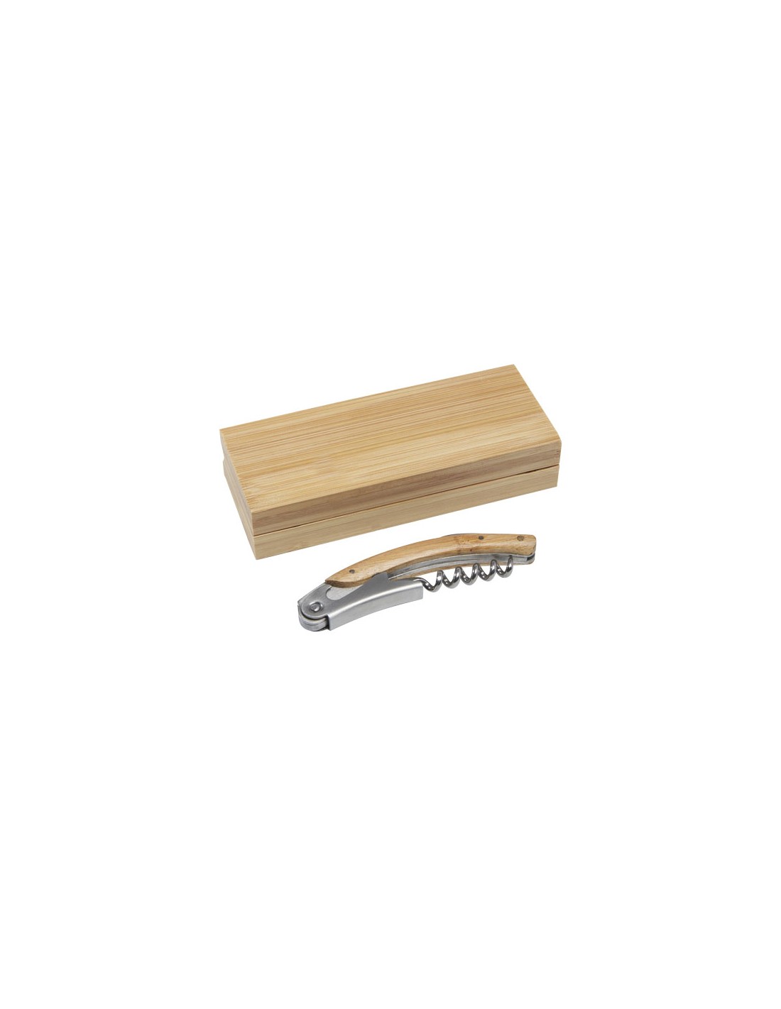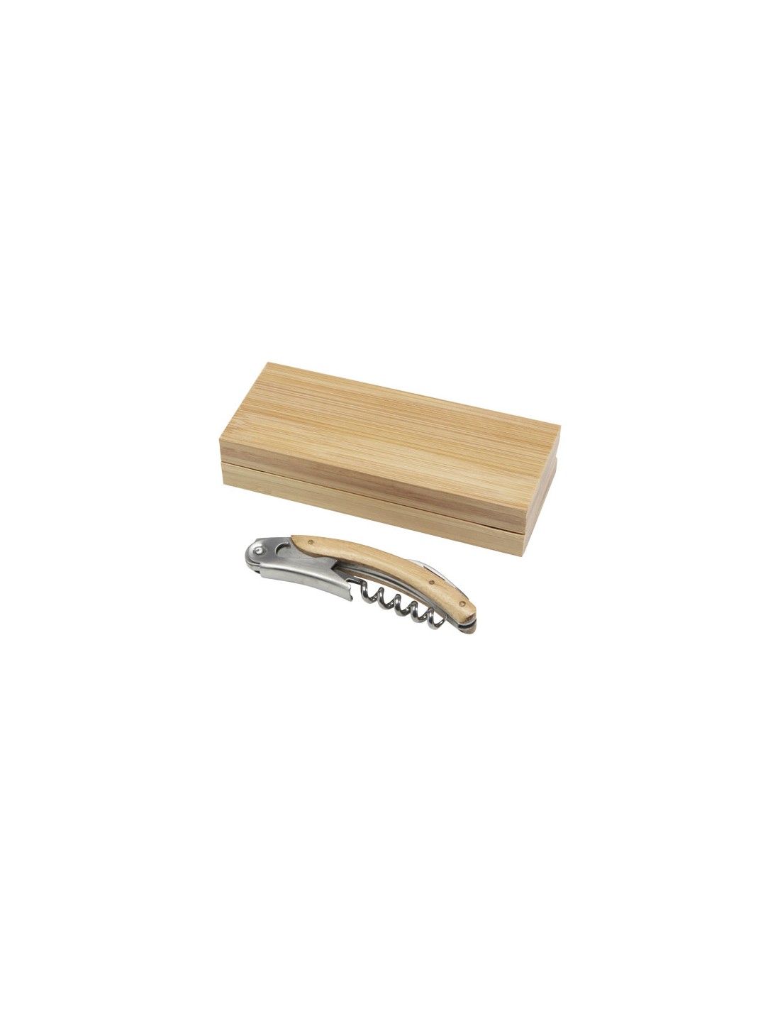 Set porta vino realizzato in legno di acacia. Il set comprende un coltellino da cameriere con cavatappi e tagliacapsule a scomparsa, che funge anche da portabottiglie per il vino. Un regalo perfetto per chi adora il vino.