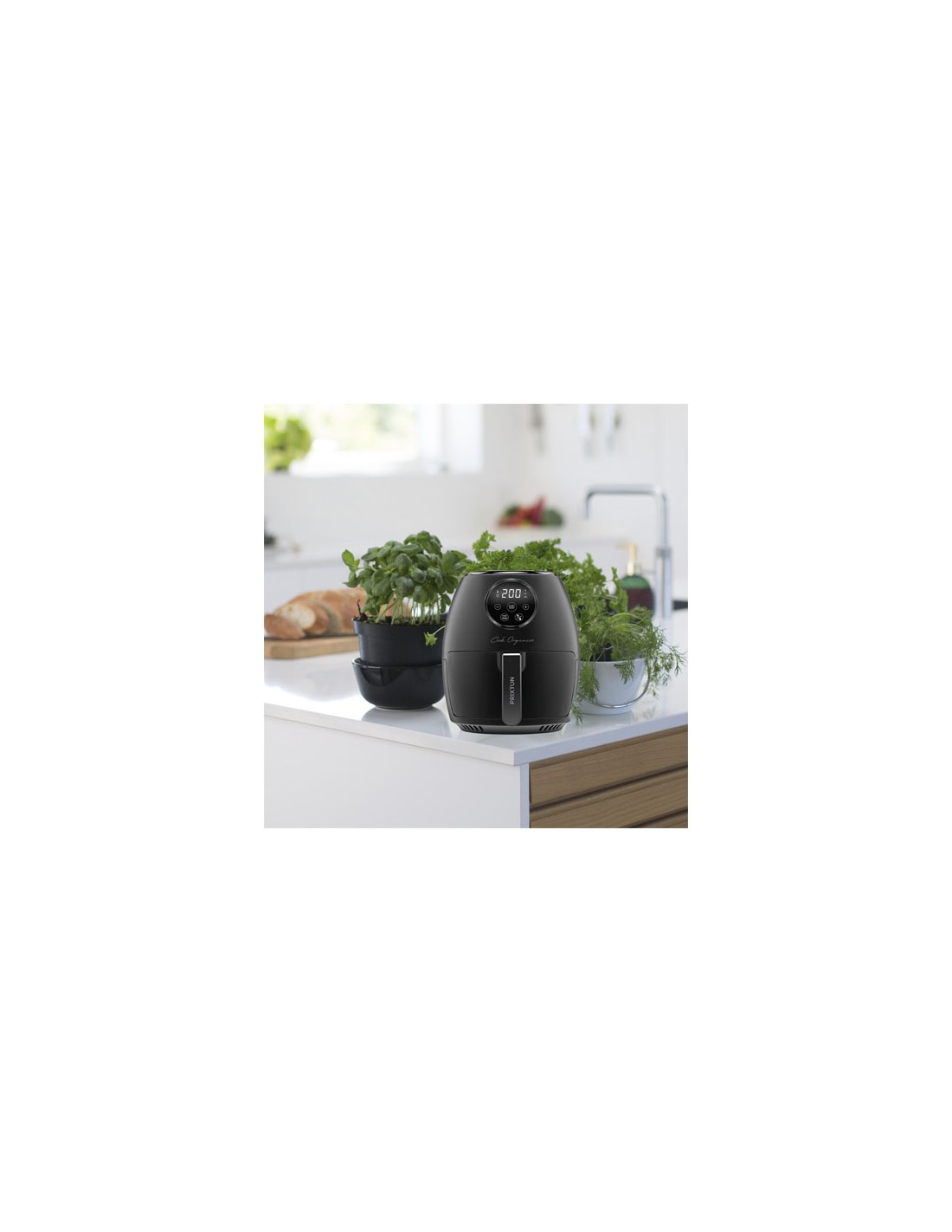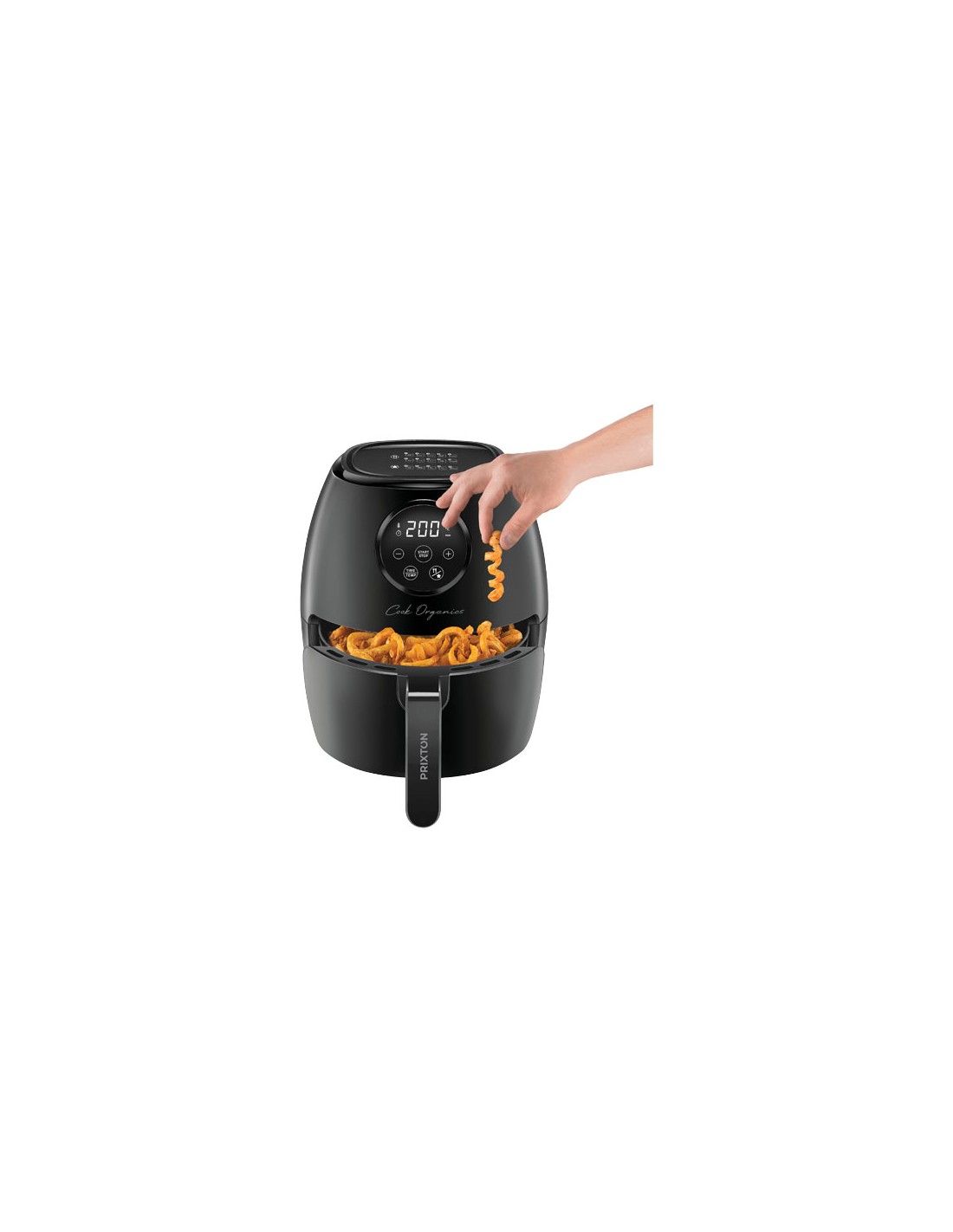 Friggitrice ad aria con tecnologia di circolazione rapida dell'aria calda. Capacità 3,5 litri. Tempo e temperatura regolabili. 10 programmi predefiniti. 5 funzioni di avvio rapido. Touch screen a LED. Vaschetta e cestello con rivestimento antiaderente. Termofusibile interno protezione surriscaldamento. Funzione di spegnimento automatico. Potenza/tensione: 1300 W / 220-240 V.