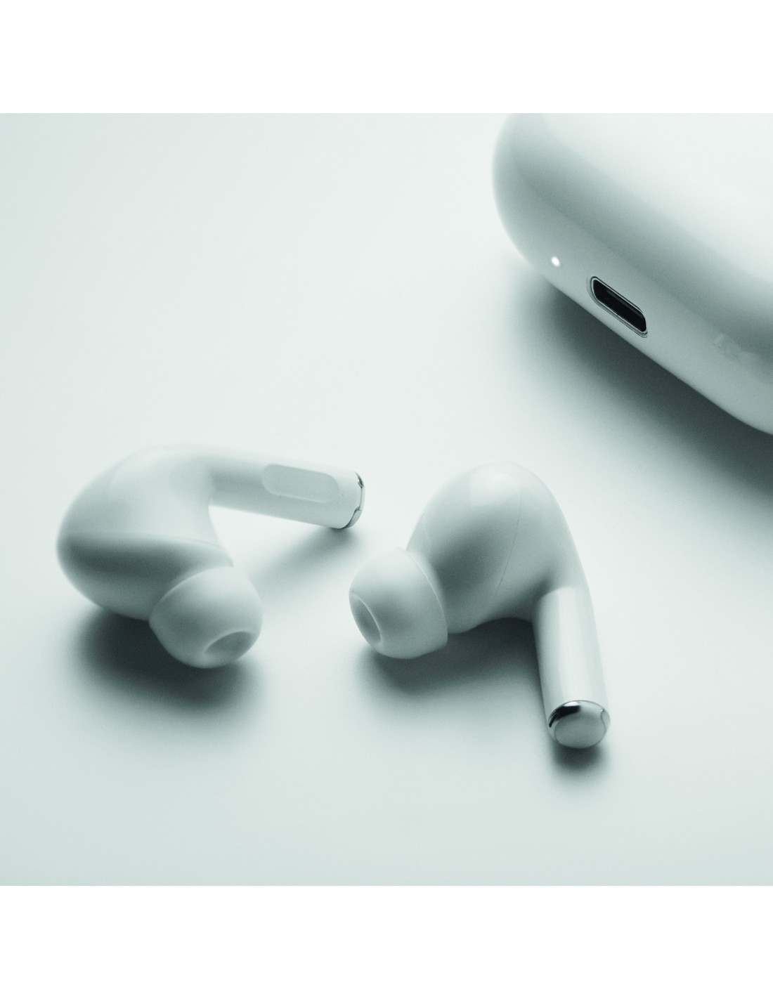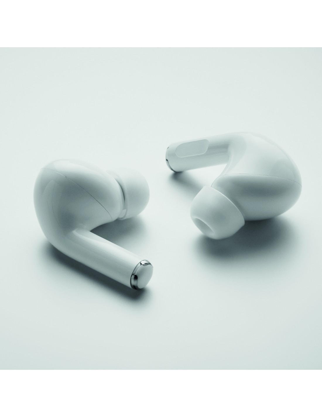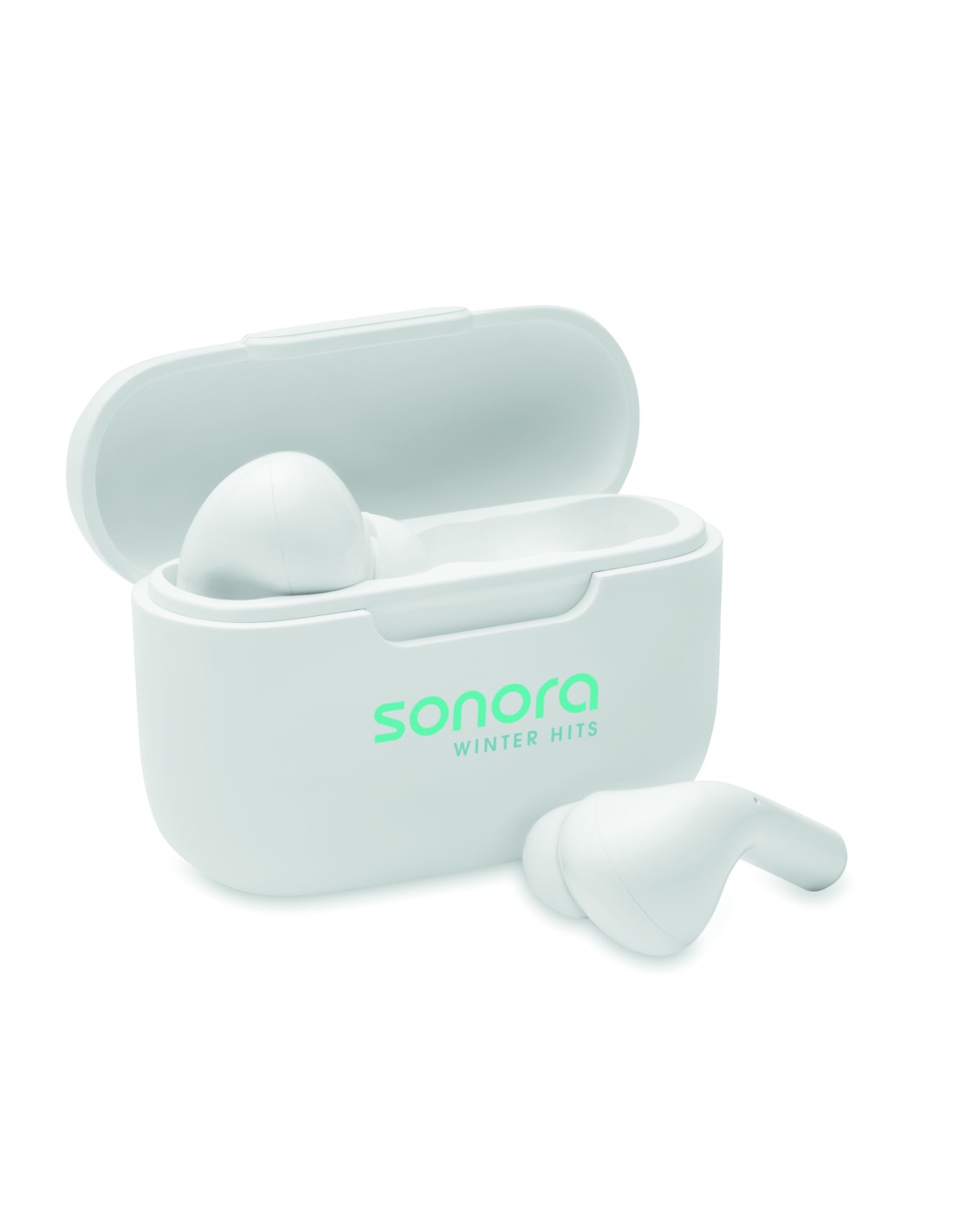 Auricolari wireless con qualità audio premium. Gli auricolari possono essere riposti e ricaricati nella base in metallo a forma cilindrica, decorabile con la stampa luminosa di un logo. La batteria nella base può ricaricare gli auricolari due volte. Microfono incorporato. Bluetooth® 5.0....