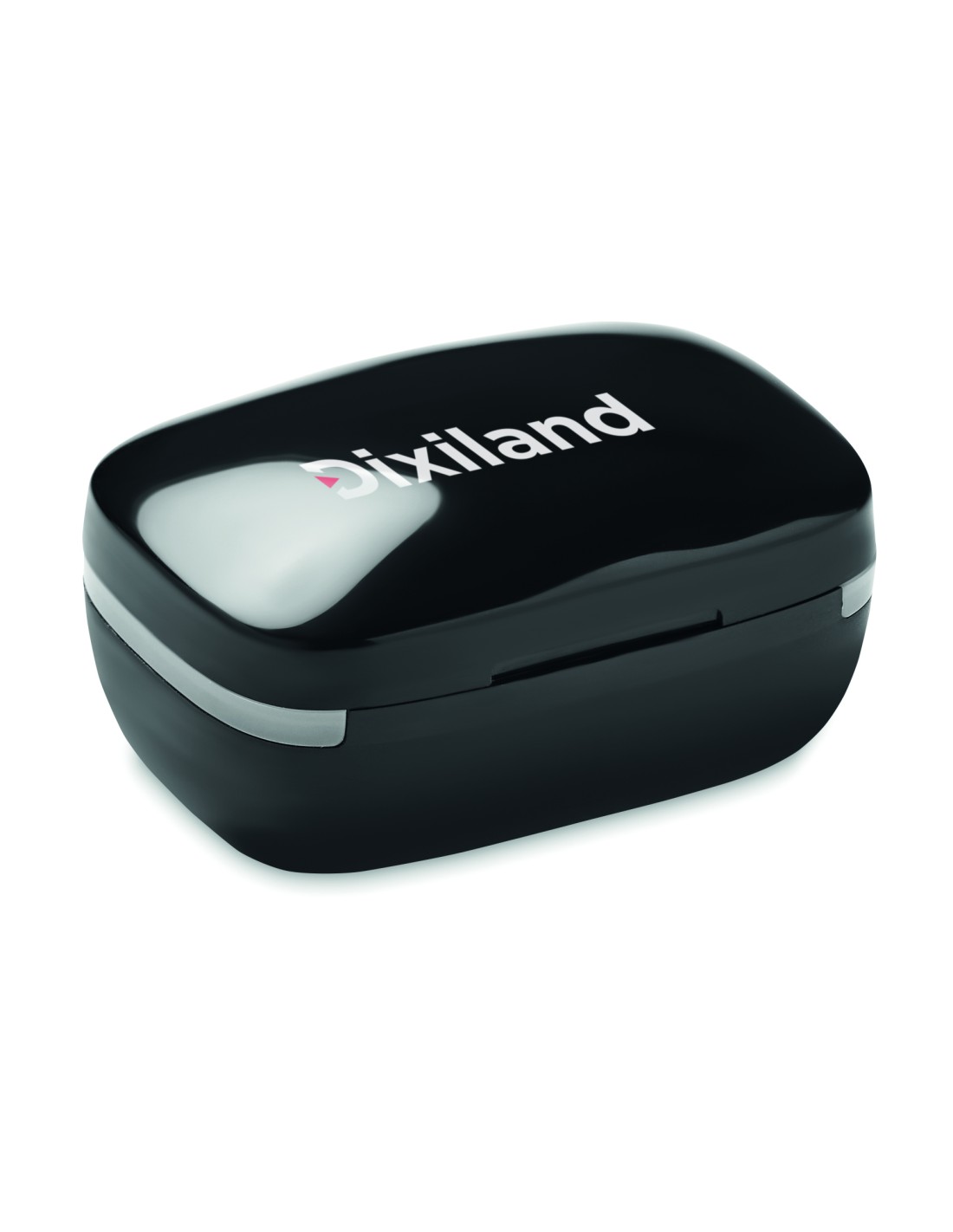 Set di 2 auricolari True Wireless Stereo (TWS) 5.1 con microfono e batteria da 25 mAh integrata. Durata di riproduzione di circa 3 ore. Associazione automatica. Include un cavo di ricarica micro USB e una stazione di ricarica da 200 mAh.