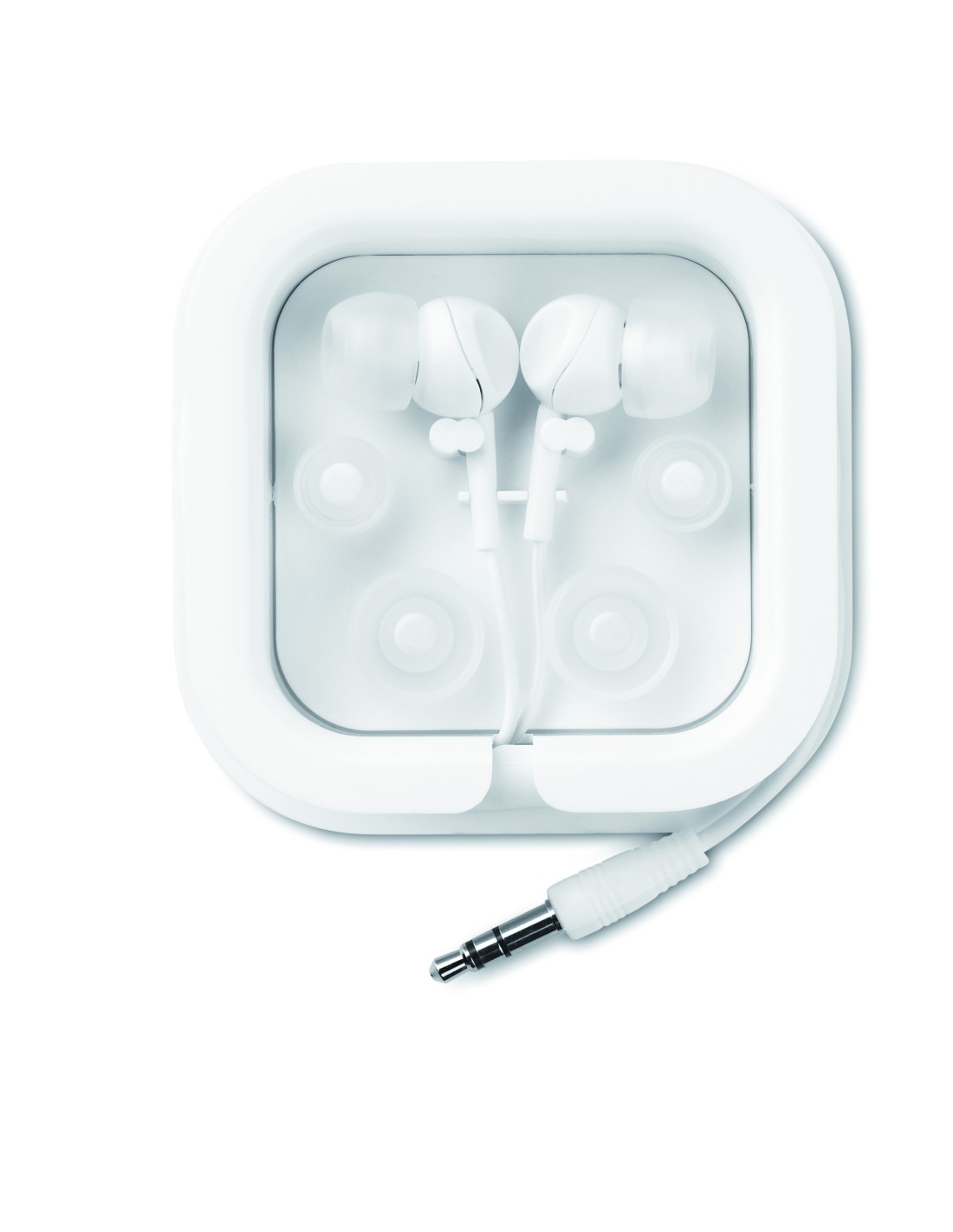 Auricolari in silicone con 2 ricambi. In confezione di plastica e cavo da 120 cm.