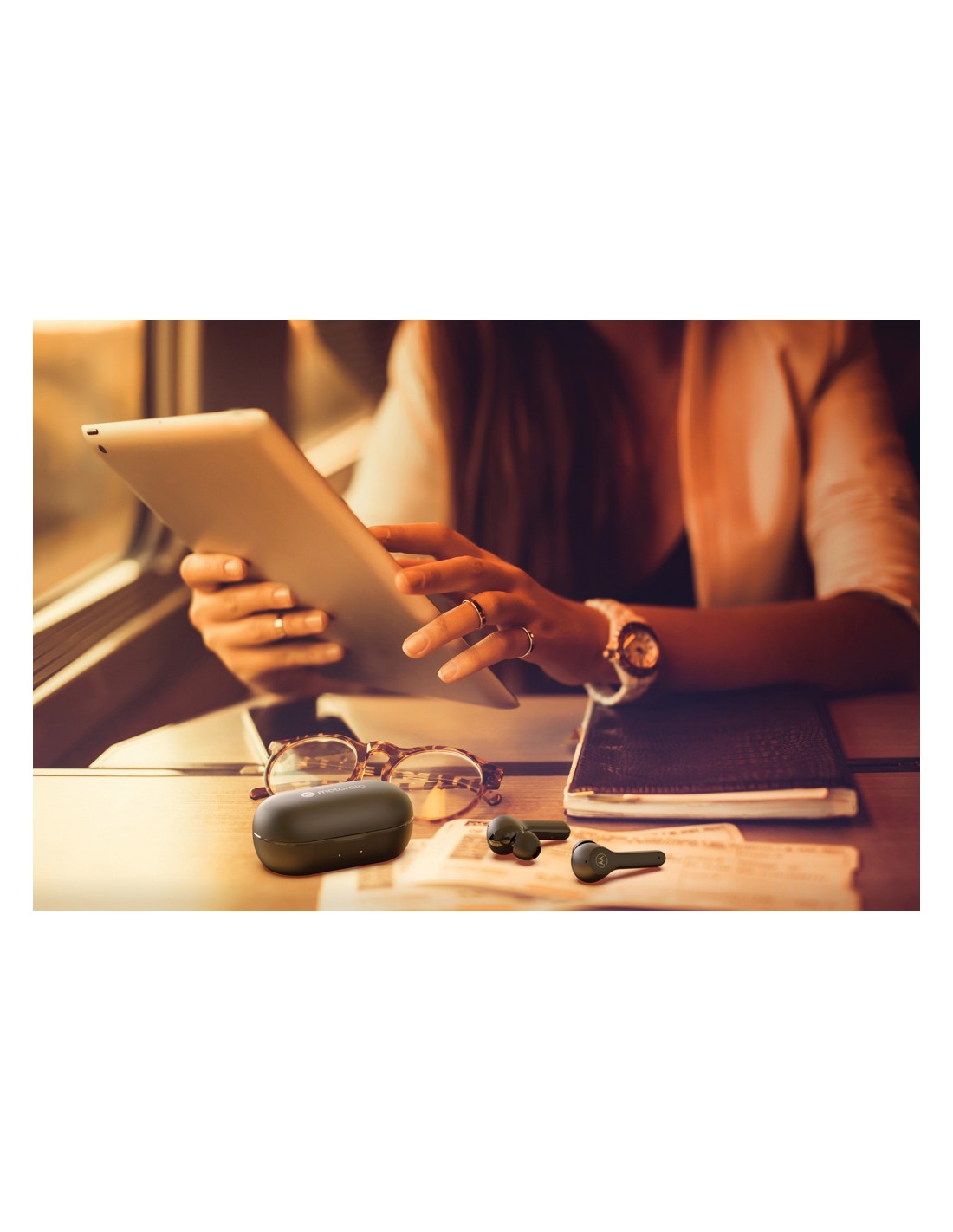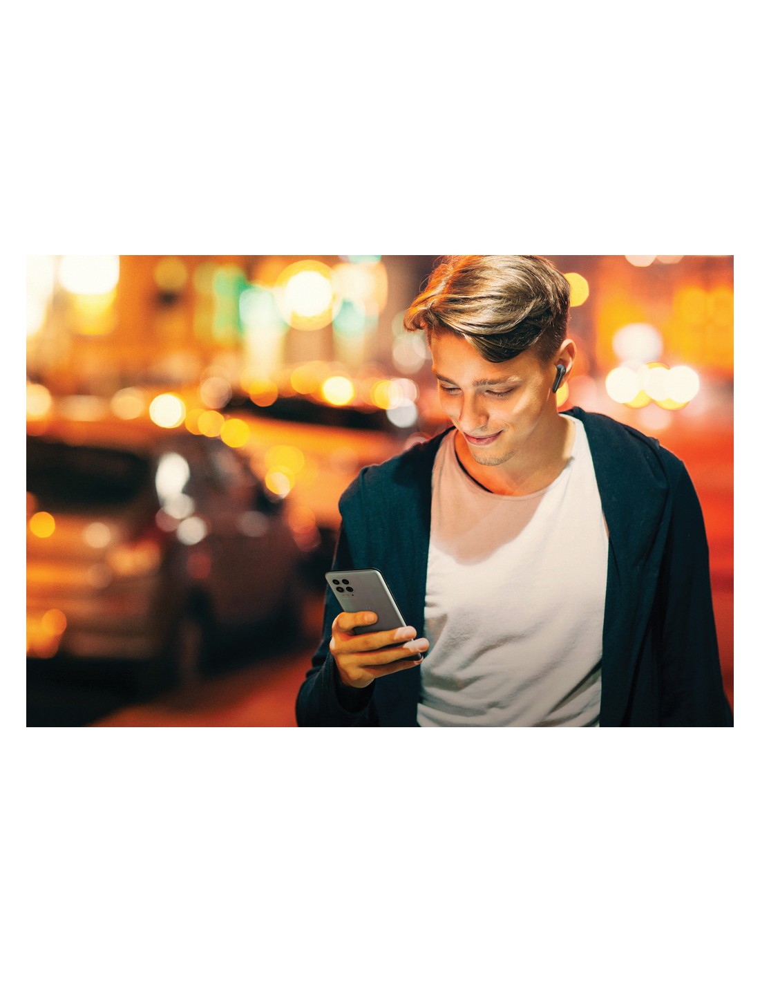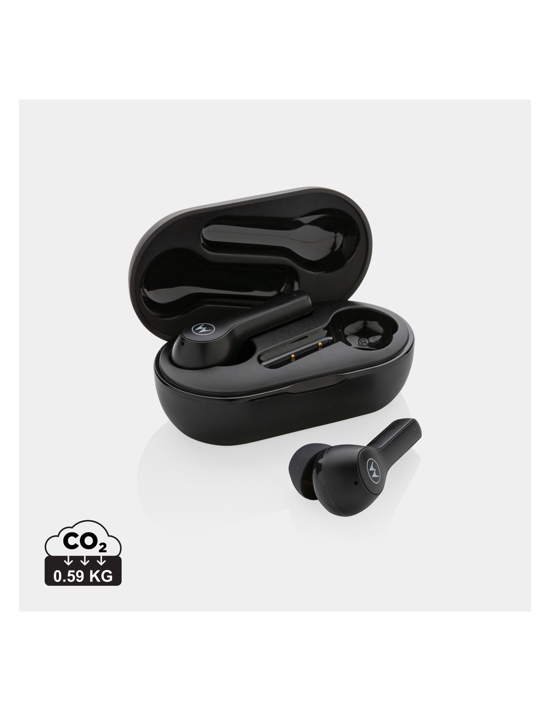 ABS True Wireless Stereo (TWS) Auricolari stereo wireless 5.3 con microfono e batteria agli ioni da 30 mAh e scatola di ricarica da 200 mAh. Durata di riproduzione di circa 4h. Associazione automatica.