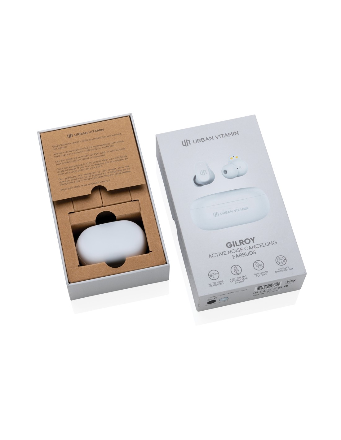 Il miglior suono inizia dal miglior silenzio. L'oggetto che tieni tra le mani ha questa caratteristica ed offre un suono profondo e chiaro. Gli auricolari sono dotati di cancellazione attiva del rumore (ANC) per bloccare il rumore esterno mentre ascolti la tua musica, podcast o video preferiti. Grazie alla cancellazione del rumore ambientale (ENC) anche le tue telefonate sono cristalline filtrando il rumore ambientale durante la chiamata. Non dovrai più ripetere le cose 2 volte. Includono funzione touch per rispondere alle chiamate, protezione IPX5 per rendere gli auricolari resistenti alle intemperie, al sudore e agli schizzi. Autonomia fino a 5 ore di ascolto e grazie alla custodia di ricarica avrai fino a 20 ore di riproduzione. Per ricaricare la custodia, collega il cavo type C o appoggiali su un caricabatterie wireless. Gli articoli Urban Vitamin sono realizzati senza PVC e confezionati in imballaggi 100% senza plastiche.