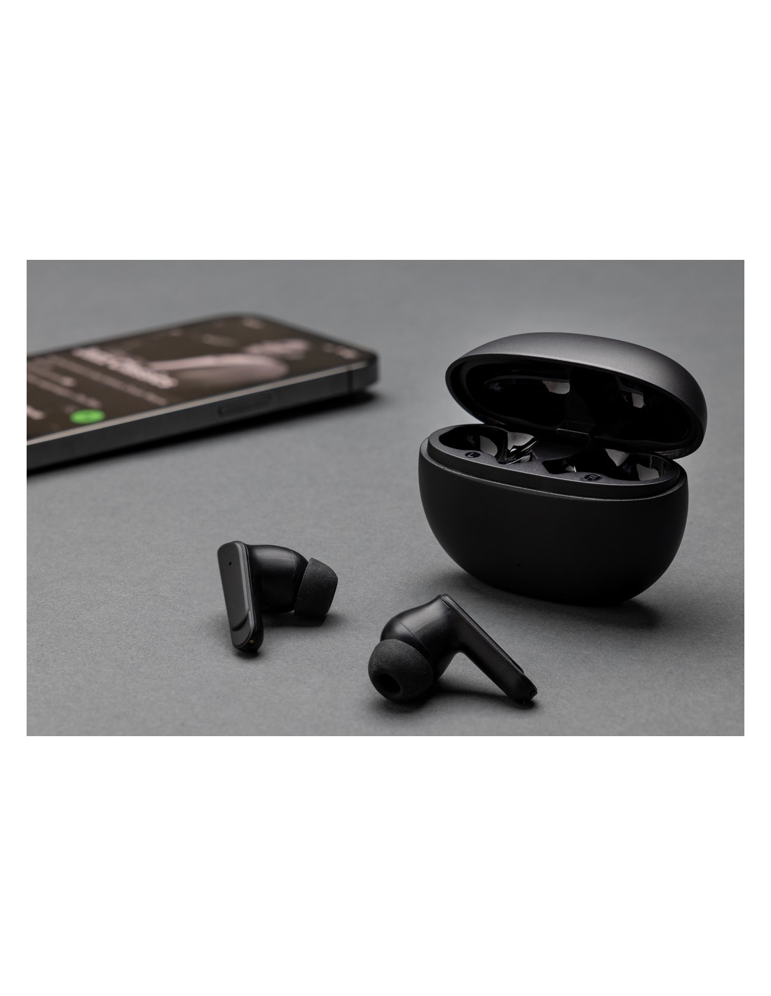 Con questi auricolari ibridi ANC ed ENC potrete spostarvi, lavorare o viaggiare nel silenzio. La funzione ANC riduce il rumore esterno per favorire la concentrazione. La funzione ENC filtra i rumori esterni durante le chiamate, offrendo un'esperienza più chiara. Gli auricolari e la custodia di ricarica sono realizzati in ABS riciclato certificato RCS (Recycled Claim Standard). Contenuto riciclato totale: 66% in base al peso totale del prodotto. La certificazione RCS garantisce una catena di approvvigionamento di materiali riciclati completamente certificata. Gli auricolari sono dotati di un caricatore compatto da 200 mAh, che consente di ricaricare e portare con sé gli auricolari ovunque si vada. Gli auricolari utilizzano il protocollo BT 5.3 per un abbinamento automatico senza problemi e una connessione stabile. Gli auricolari sono dotati di una batteria da 30 mAh che garantisce fino a 5 ore di riproduzione con ANC e 7 ore senza ANC, e possono essere ricaricati in 1,5 ore nella custod