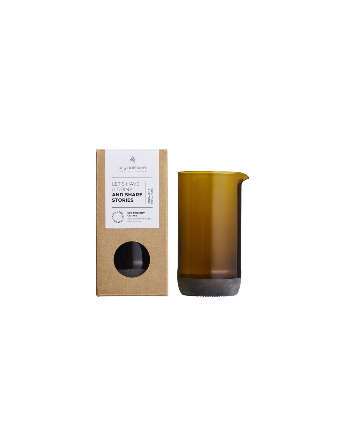 Caraffa per acqua da 430 ml realizzata a mano con bottiglie di birra riciclate creativamente, prodotto di scarto dell'industria alberghiera di Goa, in India. Consegnata in una confezione regalo.