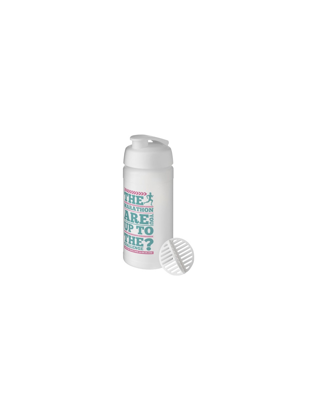 Borraccia sportiva a parete singola con sfera shaker per miscelare i frullati proteici. Coperchio ermetico con chiusura a flip. Capacità di 500 ml. Prodotto nel Regno Unito. Senza BPA. Conforme alla normativa EN12875-1 e lavabile in lavastoviglie.