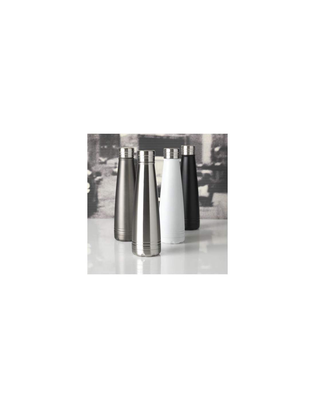 Bottiglia Duke, parete doppio strato 18/8 gradi in acciaio inox con isolamento sottovuoto. L'interno della parete è placata in rame che permette di mantenere fredde le bevande per 12 ore, quelle calde per 48 ore. Capacità 500ml. Confezione regalo Avenue.