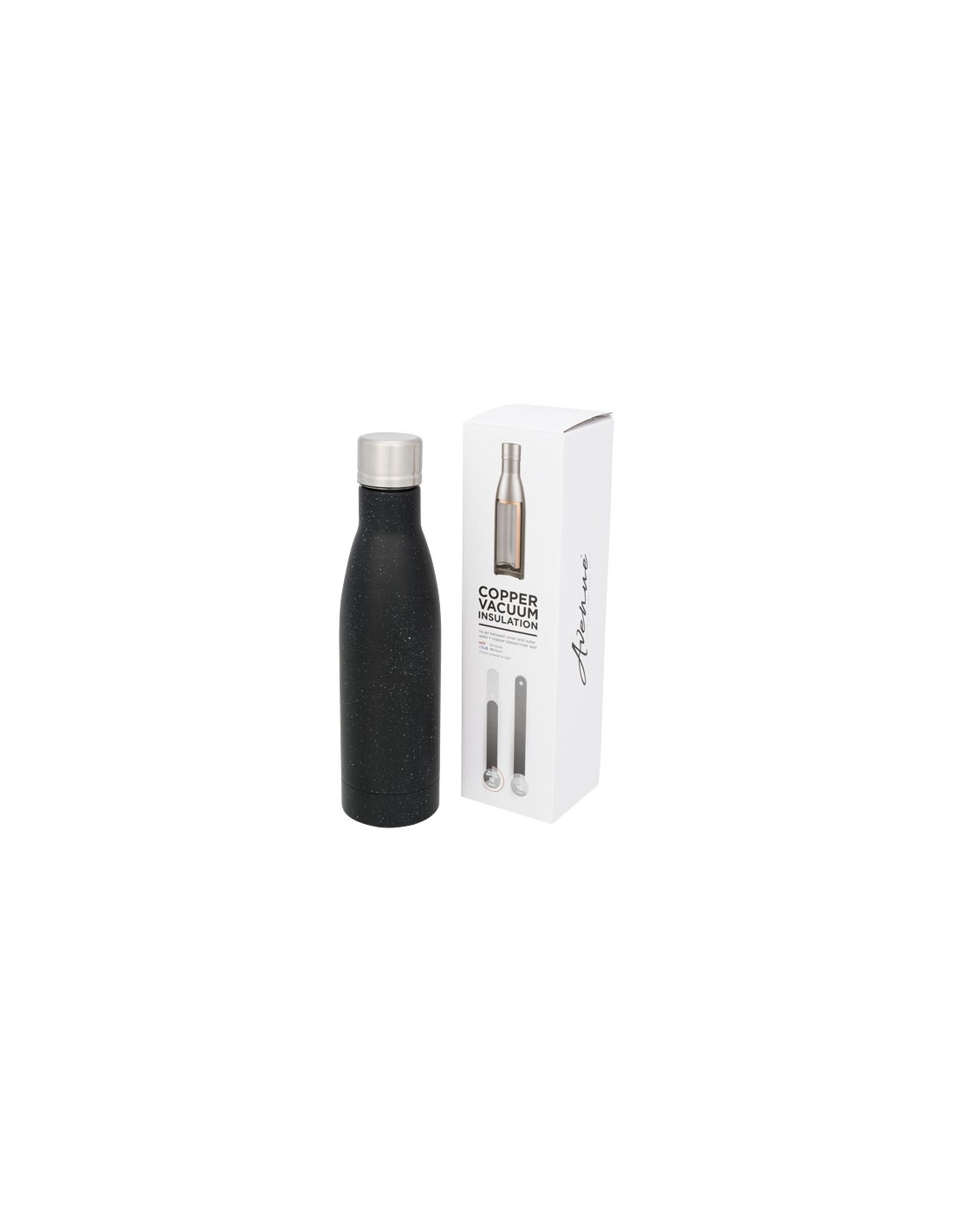 Bottiglia Duke, parete doppio strato 18/8 gradi in acciaio inox con isolamento sottovuoto. L'interno della parete è placata in rame che permette di mantenere fredde le bevande per 12 ore, quelle calde per 48 ore. Capacità 500ml. Confezione regalo Avenue.