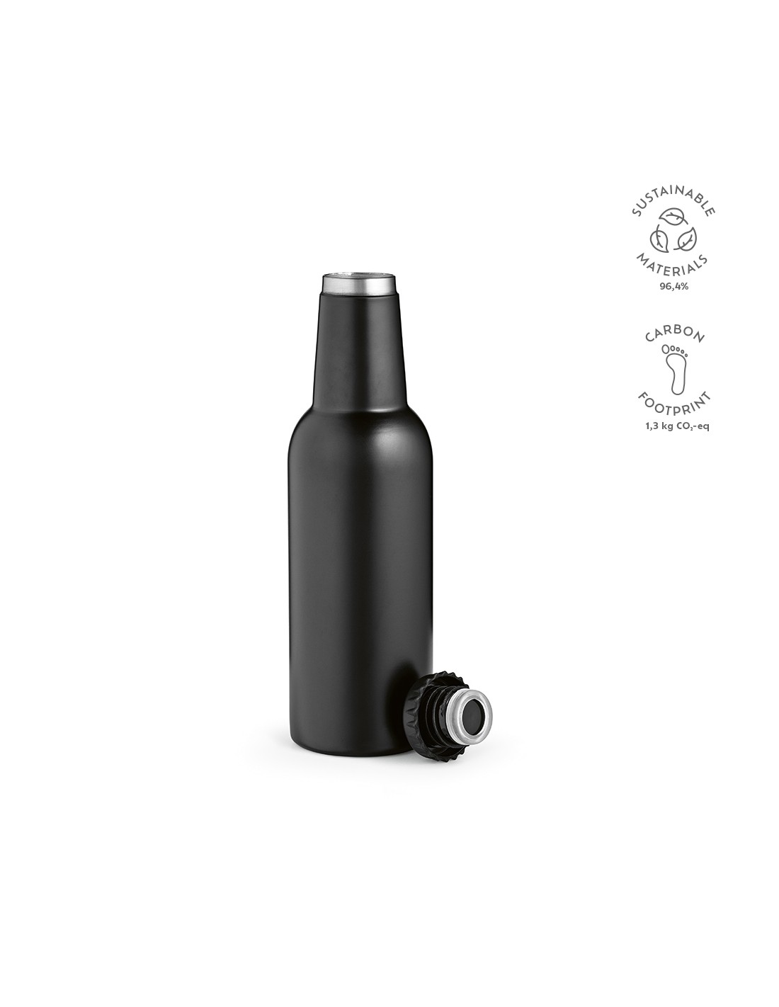 Borraccia con isolamento sottovuoto in acciaio inossidabile e dettagli in sughero nella parte inferiore. L'isolamento a doppia parete mantiene le bevande calde per 12 ore o fredde per 48 ore. Fornita in una confezione regalo in cartone riciclato. Capacità: 500 ml.