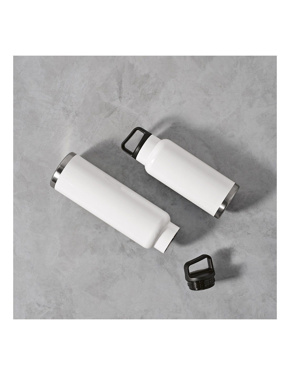 Borraccia Zambezi 1000W, capacità 1160ml (1030ml netti), realizzata in acciaio inossidabile riciclato. Progettata specificamente per la stampa a sublimazione a colori. L’isolamento a doppia parete mantiene le bevande calde per 18 ore e fredde per 54 ore. A tenuta stagna e dotata di manico sul coperchio per un trasporto agevole. Confezionata singolarmente in una scatola kraft.