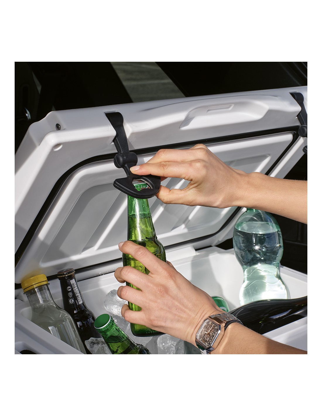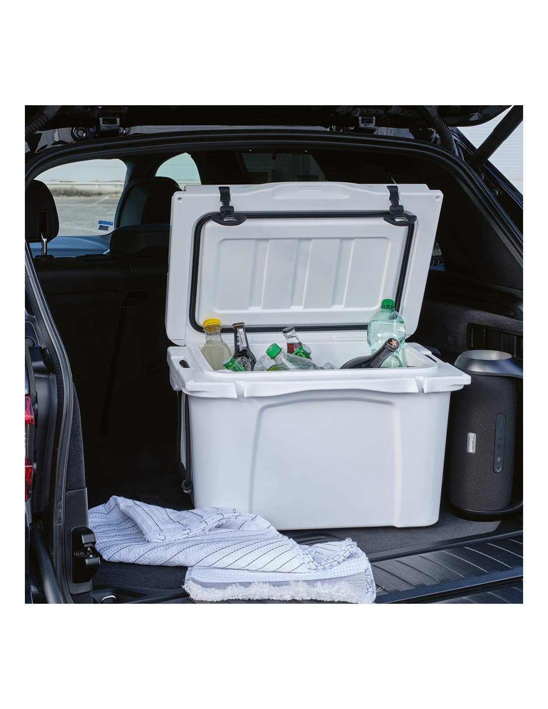 Borsa termica pieghevole con scomparto principale con cerniera e tasca frontale con cerniera. Tracolla regolabile. La borsa termica può essere appiattita grazie al velcro presente sulla tasca frontale. Accessori non inclusi.