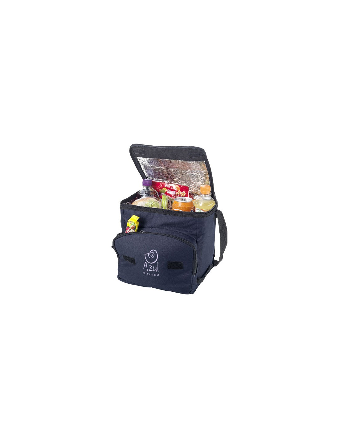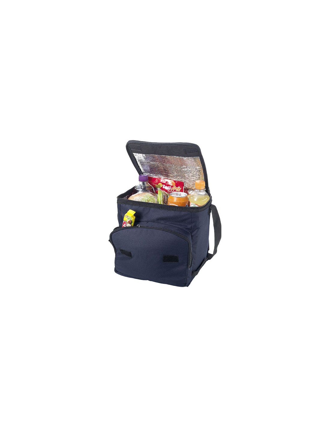 Borsa termica pieghevole con scomparto principale con cerniera e tasca frontale con cerniera. Tracolla regolabile. La borsa termica può essere appiattita grazie al velcro presente sulla tasca frontale. Accessori non inclusi.