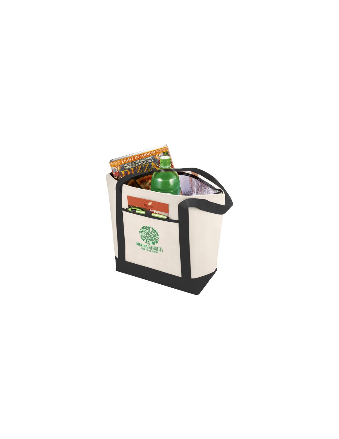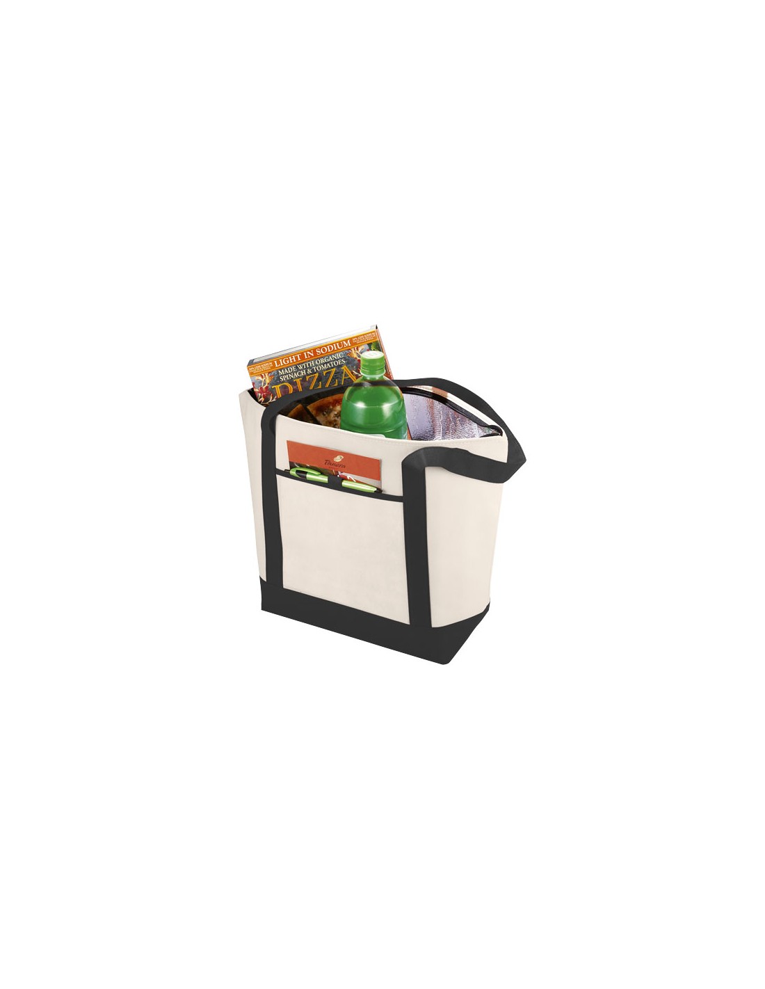La borsa termica Lighthouse dal design elegante sembra una borsa normale, ma l'apparenza può ingannare. Metti una lattina fredda nel grande scomparto principale, chiudi la cerniera e il prodotto rimarrà refrigerato. I manici lunghi 28 cm rendono la borsa facile da trasportare sulla spalla. La borsa frigo ha una tasca frontale aperta e un passante porta penna (accessori non inclusi). La borsa frigo è realizzata in plastica PP da 80 g/m², un materiale versatile e leggero.