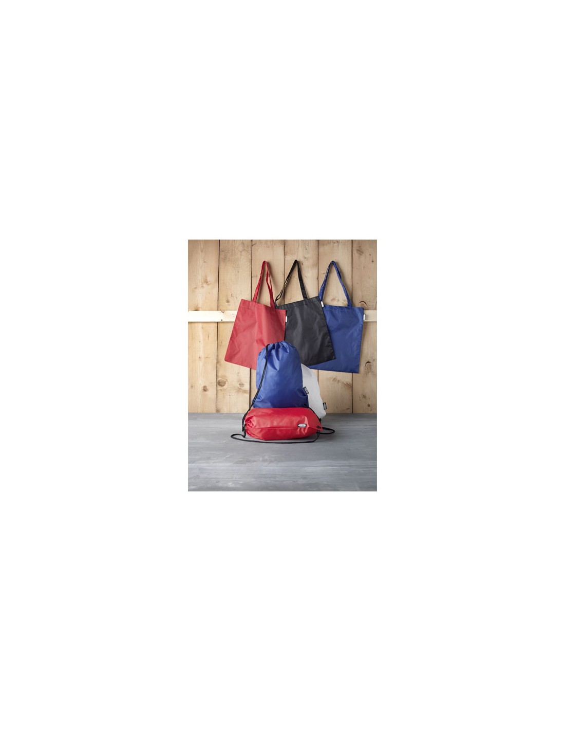 La borsa pieghevole Ash realizzata in materiale riciclato presenta uno scomparto principale con chiusura a coulisse e una tasca anteriore con zip per ripiegarla all'interno, trasportarla e riporla con facilità.