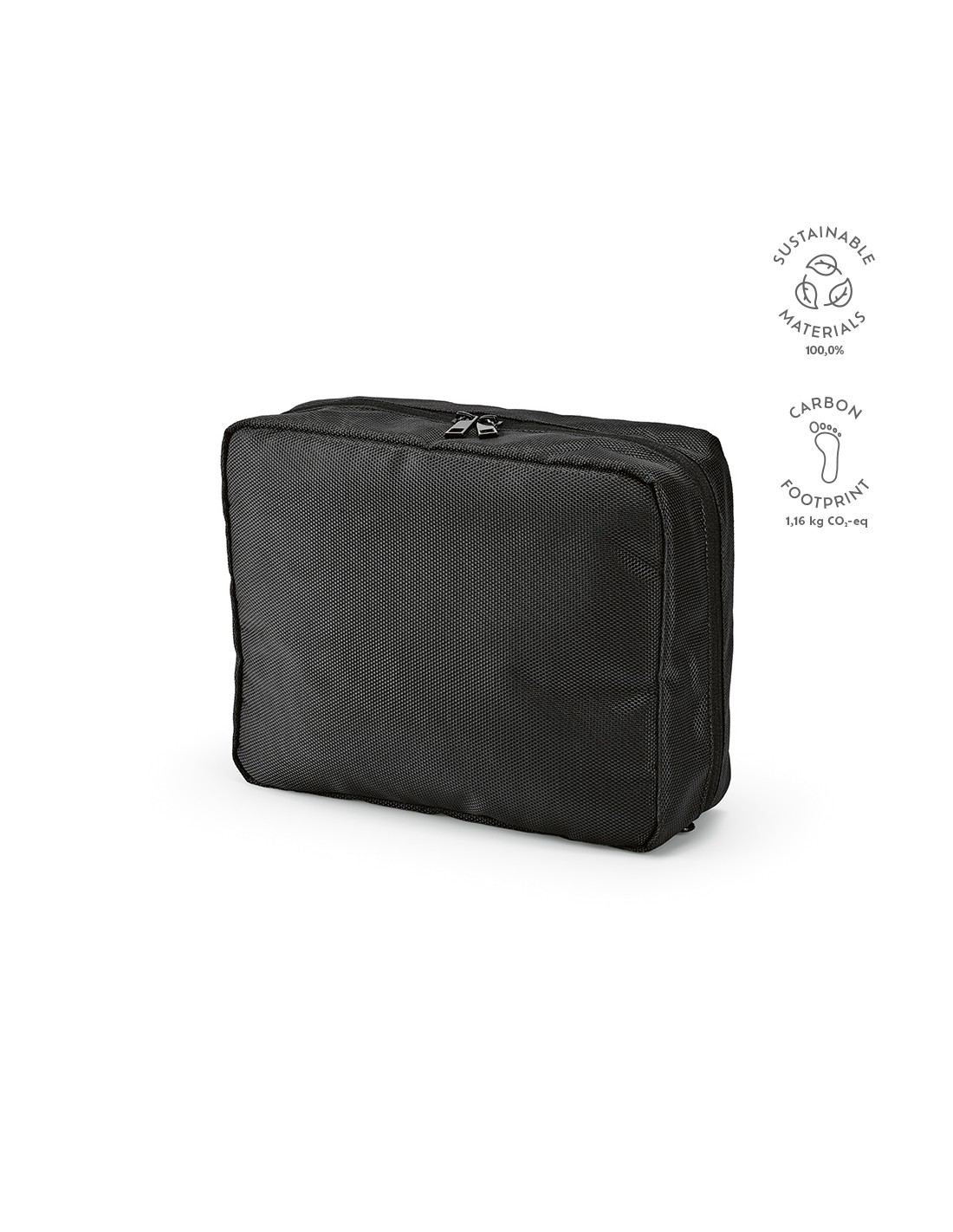 Il beauty case Venice è realizzato in poliestere 1680D riciclato con rivestimento in PU. Offre una capacità di 4,5L con due ampi scomparti con zip e un gancio laterale per appenderlo. Ideale per l'organizzazione durante i viaggi. Disponibile in 2 colori.