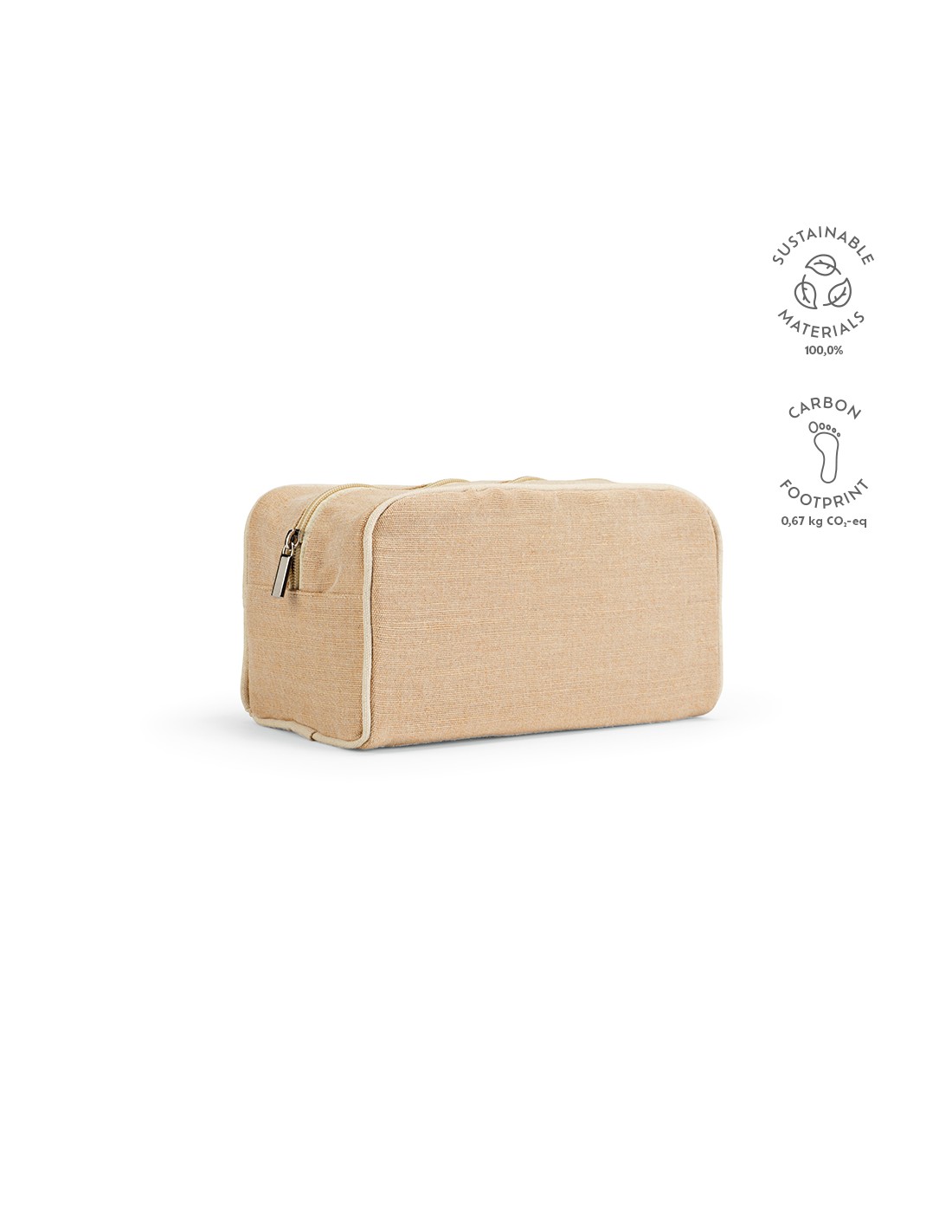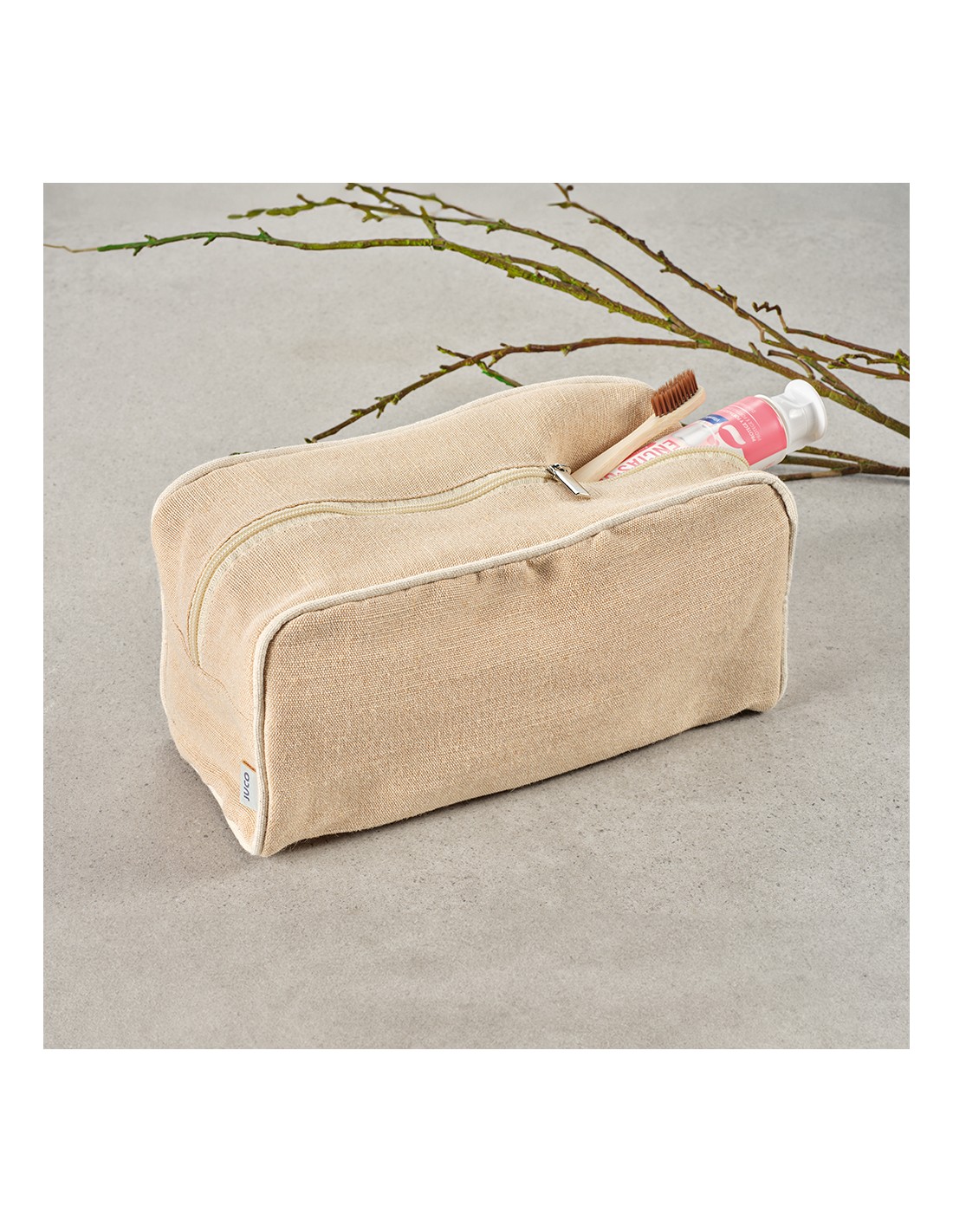 Il beauty case Rio, realizzato in Juco da 260gsm, è di colore naturale (3,3L). Con un ampio scomparto e dimensioni generose di 25 x 13 x 10 cm, è un compagno di viaggio elegante e pratico, adatto all'uso quotidiano.