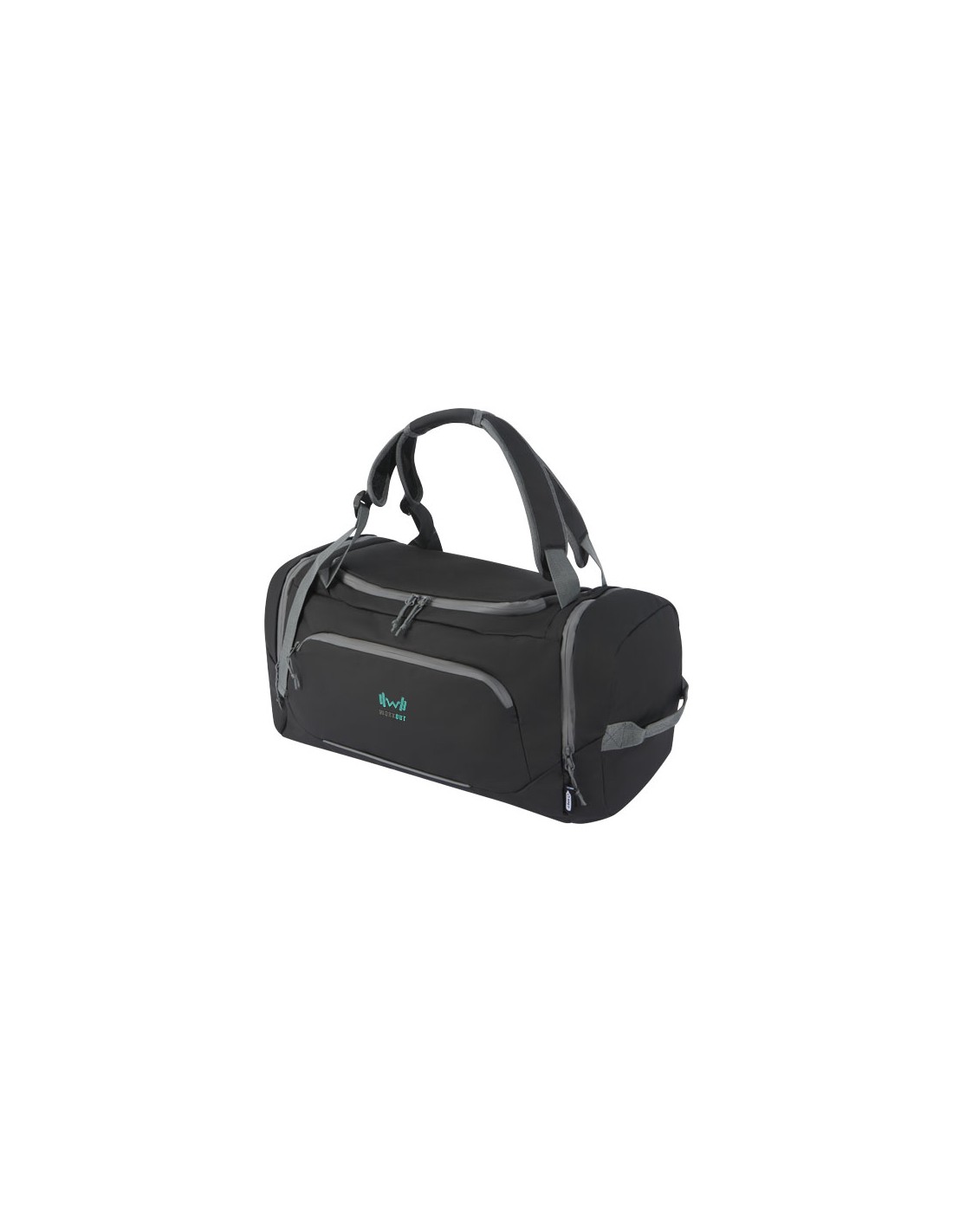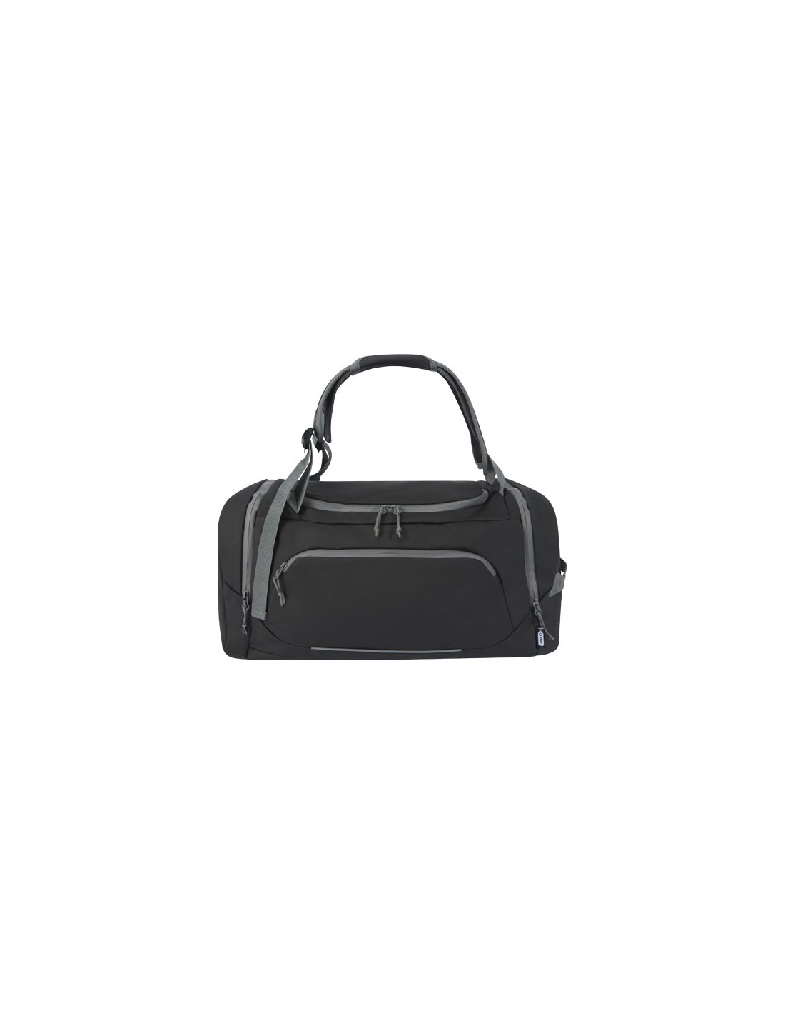 Borsa da viaggio con tracolla regolabile, ampie tasche laterali e tasca frontale.