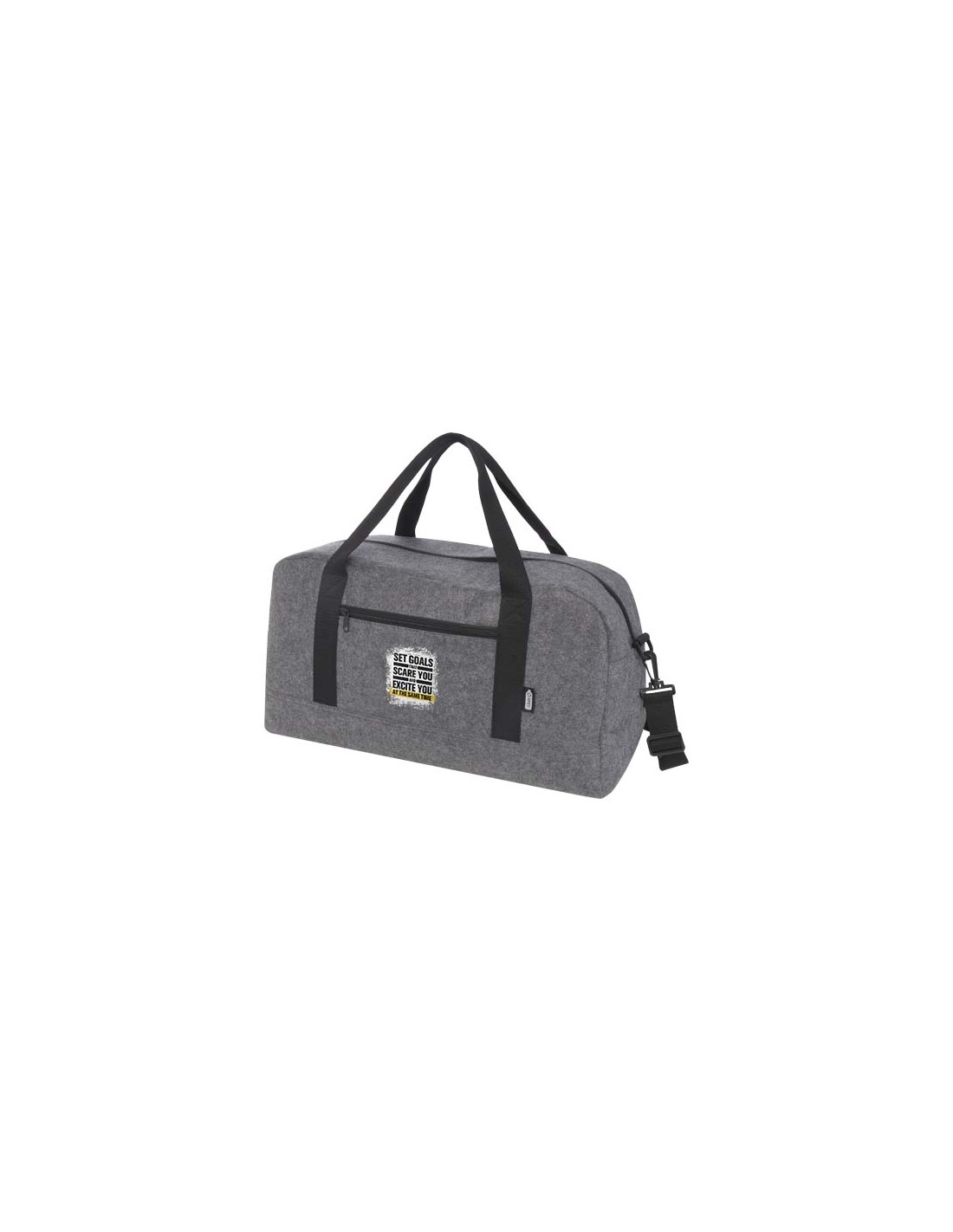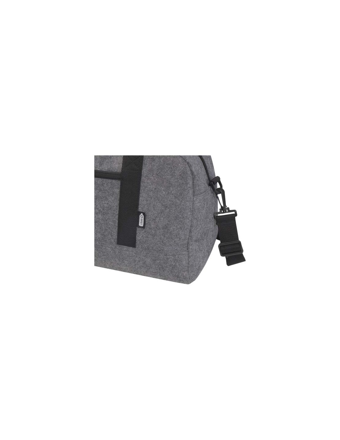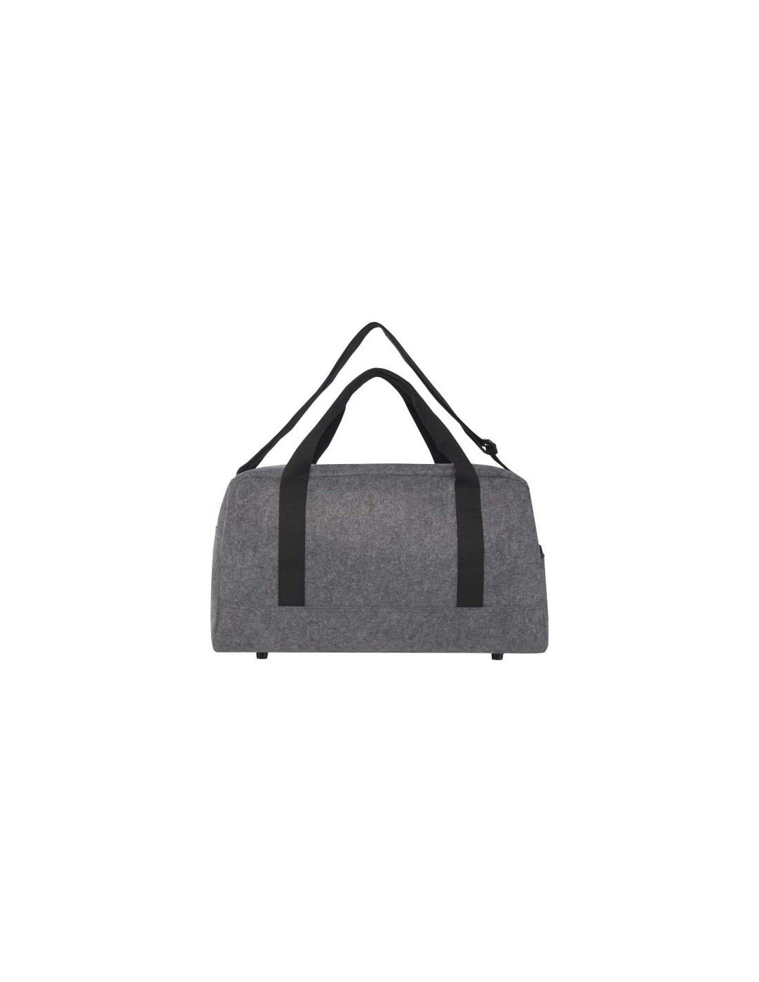 Borsone multiuso realizzato in feltro riciclato certificato GRS di alta qualità, morbido e resistente. Dispone di un ampio scomparto principale, una tasca anteriore con cerniera, una tasca laterale, spallacci removibili e regolabili e comodi manici in cotone per diverse modalità di trasporto. I piccoli piedini/tacchetti sul fondo della borsa servono per tenerla leggermente sollevata da terra, evitando che entri in contatto con sporco e umidità. Capacità: 35 litri.