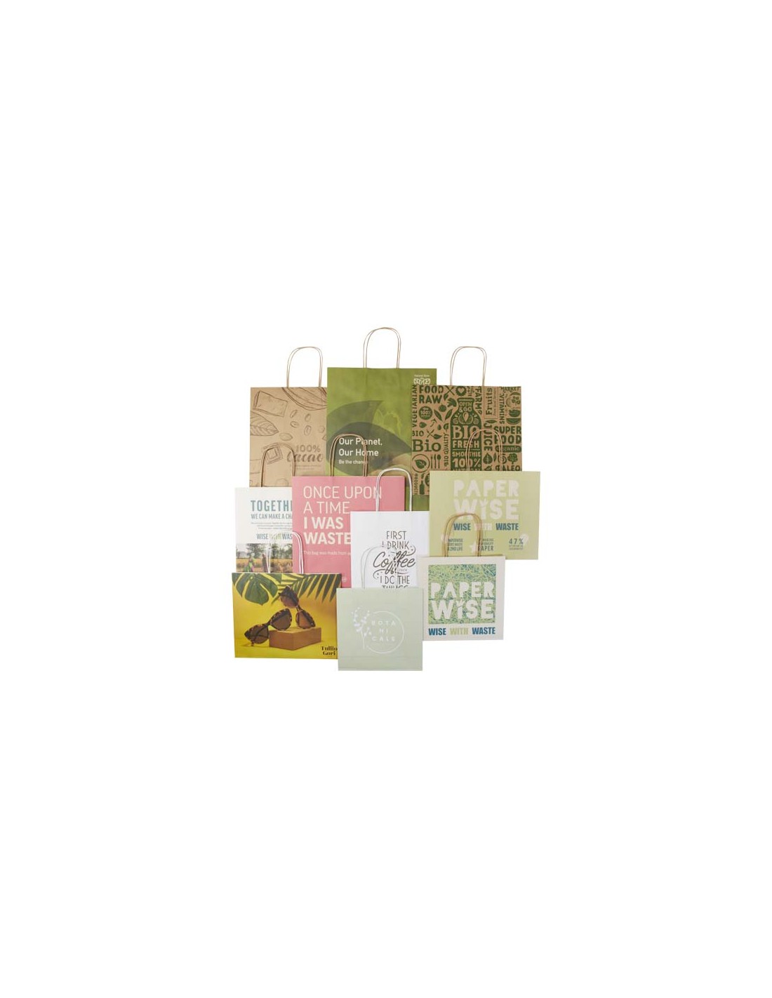 Sacchetto in carta kraft di dimensioni extra large (34 x 20 x 35 cm) con manici intrecciati. Realizzato in Europa con carta di provenienza responsabile (bianco da 90 g/m², marrone da 80 g/m²) è una soluzione per il confezionamento sostenibile e durevole con ampio spazio per una varietà di...