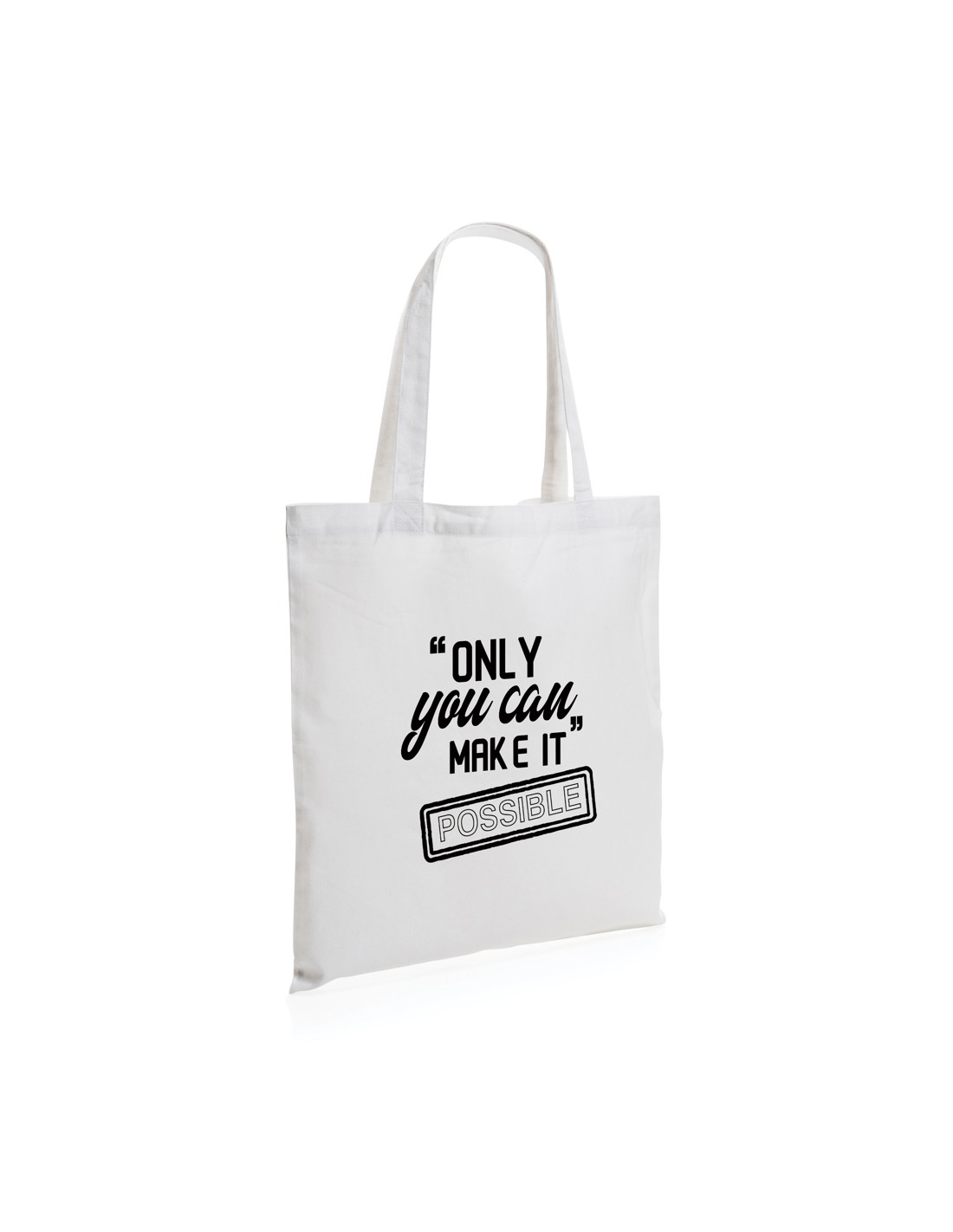 Racconta la vera storia sulla sostenibilità! Porta con te questa shopper in cotone 145gr ovunque tu vada. Include un soffietto di 6 cm per aumentarne la capacità e integra la tecnologia tracciante AWARE™. Con AWARE™ sono garantiti l'uso di materiali in tessuto riciclato (70% cotone e 30% tessuto)...