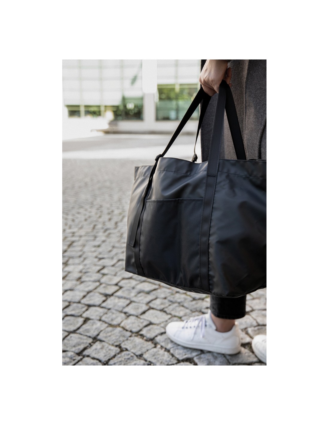 Maxi shopper perfetta per viaggiare, realizzata in poliestere super leggero certificato GRS con elegante rivestimento in PU. Semplice da piegare e fissare con l'ingegnoso strap e fibbia che ti permette di riporla in modo compatto quando non la usi. Ha cinghie regolabili per il trasporto a mano o a tracolla. È dotata di una pratica tasca esterna e una interna più piccola per le tue necessità.È una borsa versatile, facile da trasportare ma è anche progettata per essere piegata e riposta in modo compatto nel tuo bagaglio così avrai un ulteriore spazio senza appesantirti. Certificata GRS (Global Recycled Standard), la certificazione GRS garantisce l'intera catena di approvvigionamento dei materiali ricilati utilizzati. Il contenuto riciclato totale si basa sul peso complessivo del prodotto. Questo prodotto contiene il 55% di poliestere riciclato certificato GRS.