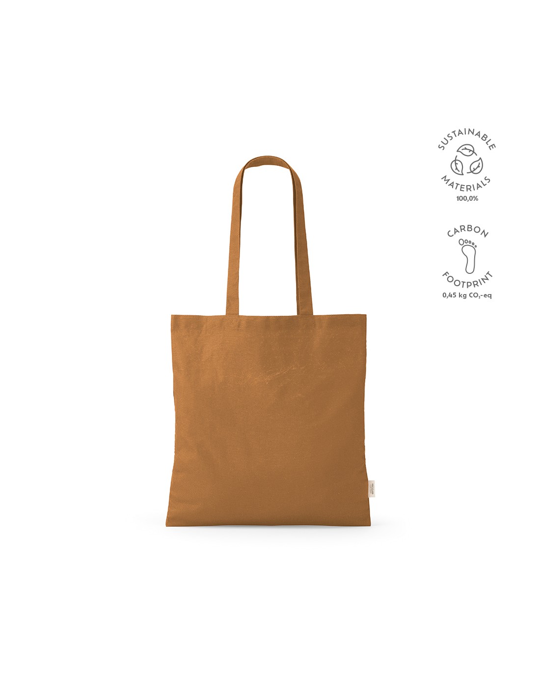 Shopper Everest realizzata con il 70% di cotone riciclato e il 30% di poliestere riciclato 140gsm. Leggera, con manici da 65cm e dimensioni generose. Disponibile in 17 colori vivaci per ravvivare la giornata. Capacità di 11L e supporta carichi fino a 10kg. Dimensioni: 38x40cm.