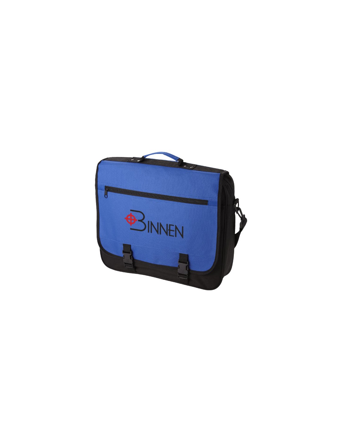 Borsa porta documenti con tracolla regolabile, chiusura della patella con fibbie, tasca frontale con zip, scomparto principale con zip e diverse tasche interne.
