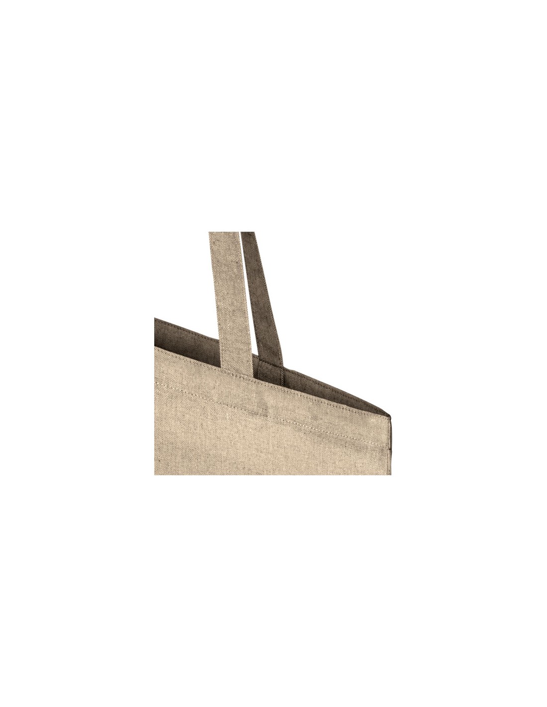 Tote bag realizzata in tessuto riciclato da 210 g/m² composto da cotone e poliestere. Il cotone riciclato è prodotto da rifiuti pre-consumo generati dalle fabbriche tessili durante il processo di taglio. Tote bag con fondo ampio e ampio scomparto principale. Dispone di due manici con un'altezza...