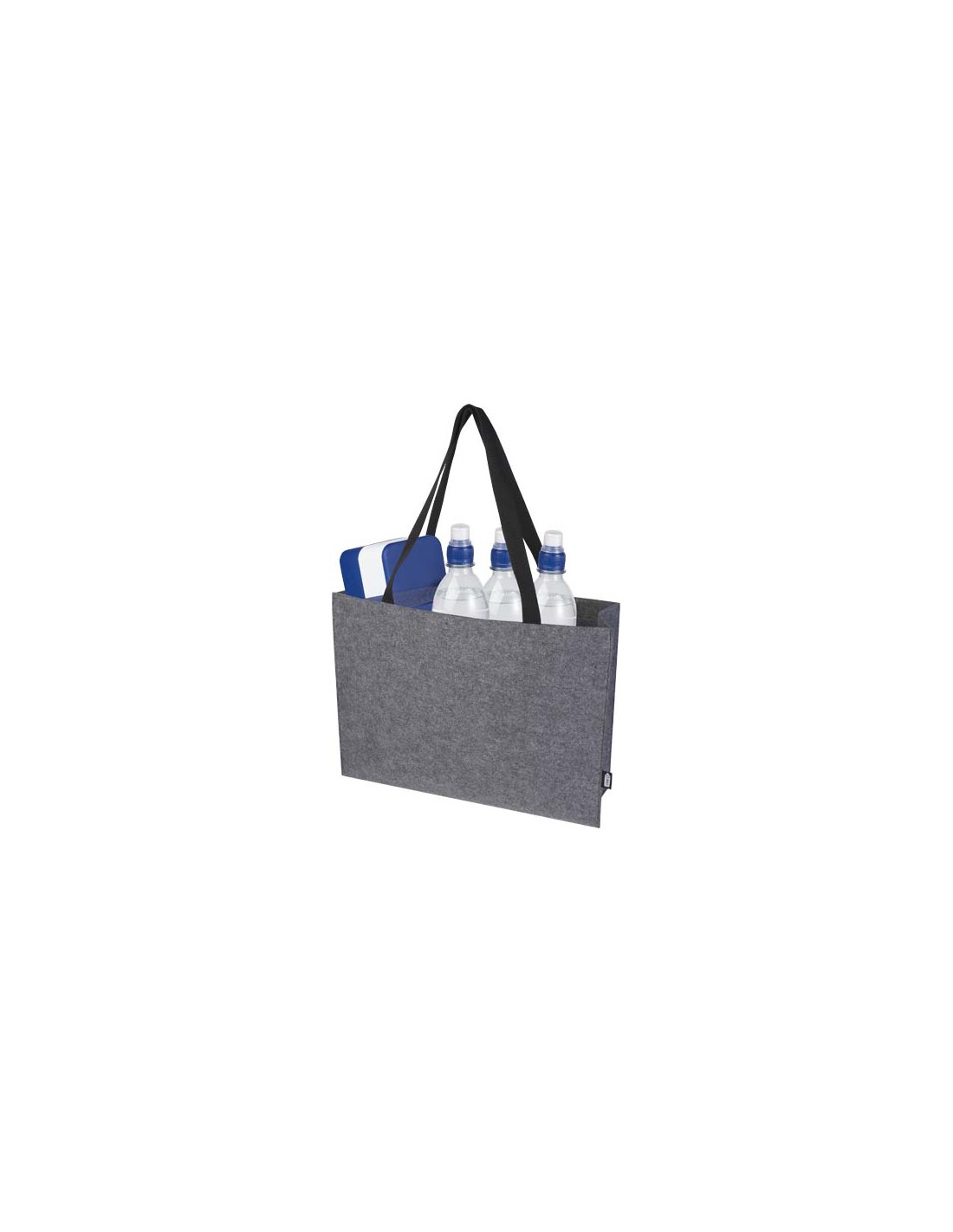 L'ampia tote bag Ash in PET riciclato è un'ottima alternativa alle borse di plastica. La borsa è resistente fino a 10 kg di peso e presenta un ampio scomparto principale aperto e può essere facilmente ripiegata utilizzando l'occhiello elastico sull'apertura. Grazie ai manici lunghi 30 cm, può...