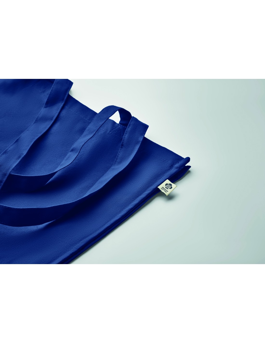 Shopper o borsa da spiaggia in tela riciclata con manici lunghi e soffietto. 280 gr/m².