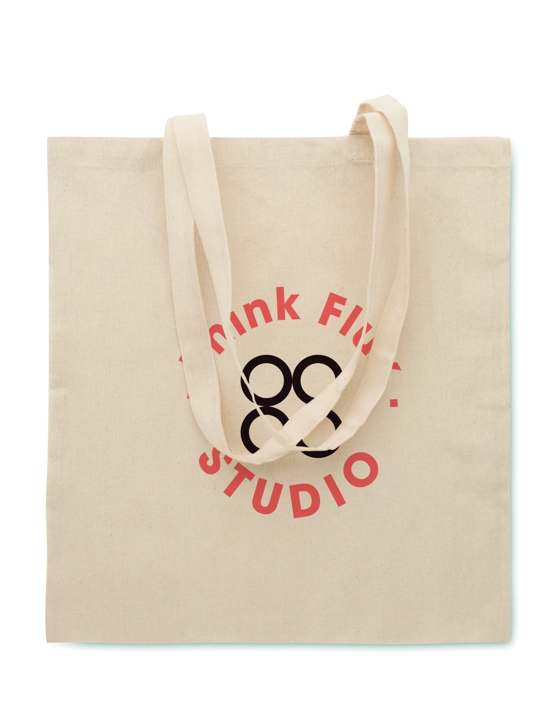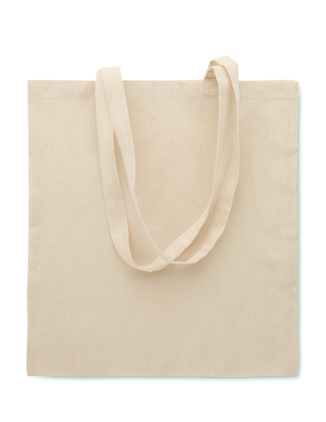 Tote bag in misto cotone e poliestere riciclato da 150 g/m². Questa borsa si ripiega facilmente per adattarsi a uno spazio ridotto ed è l'accessorio perfetto per diverse attività, tra cui la spesa, le gite di un giorno o i progetti artigianali. Il cotone riciclato è prodotto da rifiuti...
