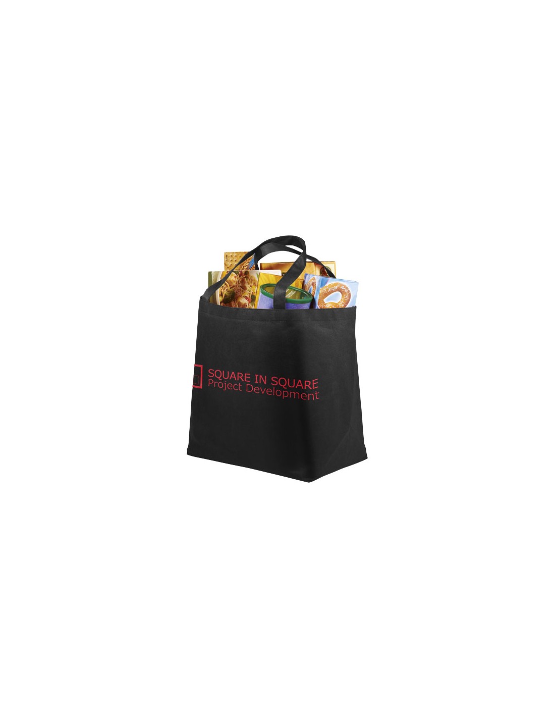 Shopper in feltro RPET con manici lunghi e base colorata.