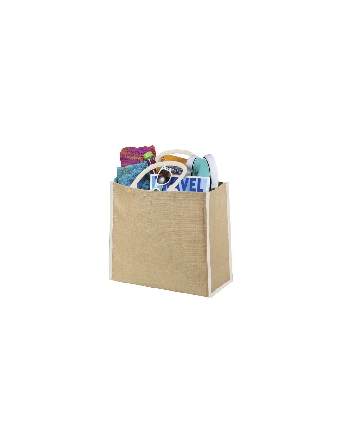 Shopper in juta e manici di cotone. Questo prodotto è certificato OEKO-TEX® STANDARD 100.