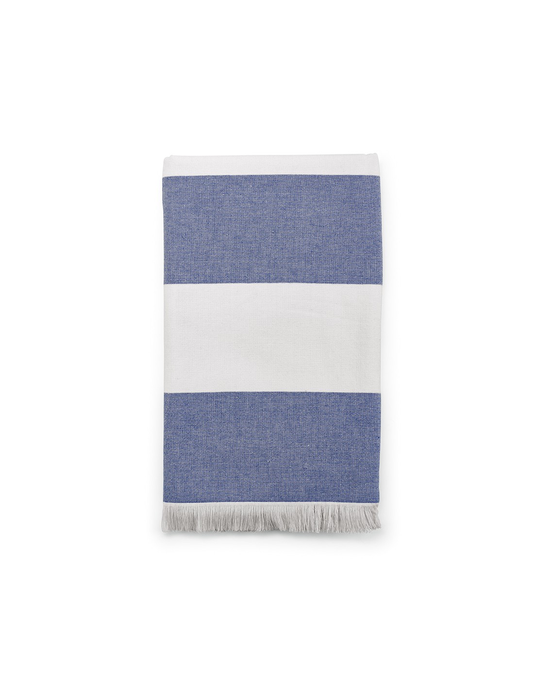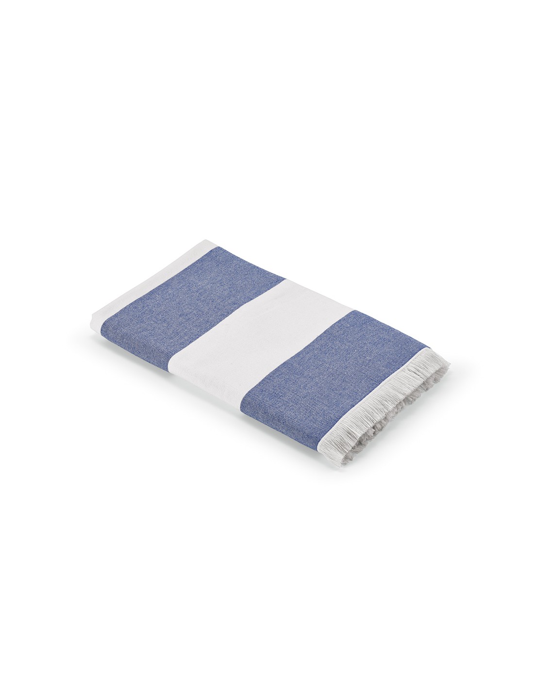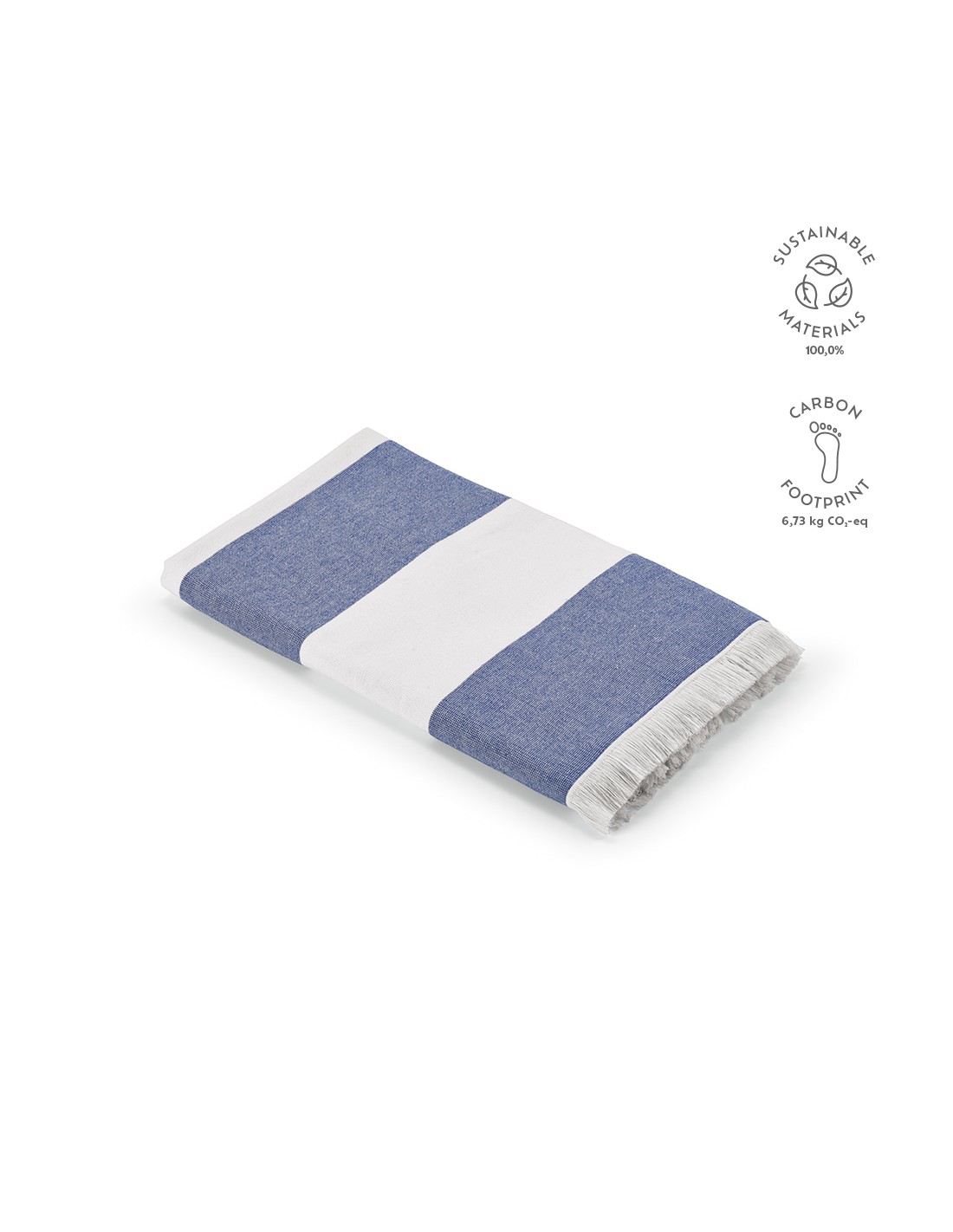 Asciugamano da spiaggia Rodin in cotone riciclato (60% cotone riciclato e 40% cotone) 350 gsm con eleganti righe orizzontali. Misura 80x180 cm, con bordo e frange. Confezionato in polybag biodegradabile, è un piacere senza sensi di colpa per la tua routine balneare. Disponibile in 5 colori. Prodotto in Portogallo.