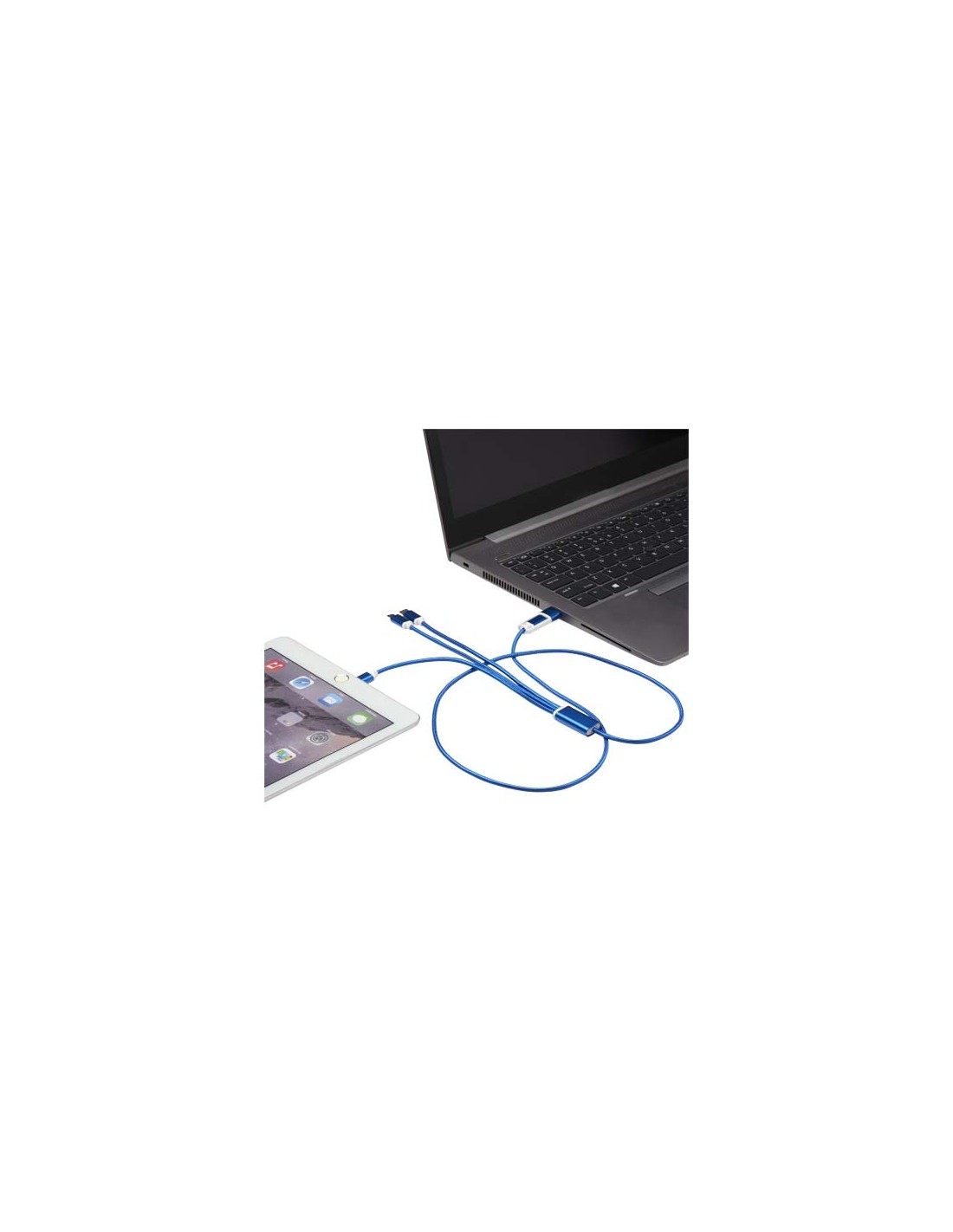Questo cavo è caratterizzato da un connettore di ingresso USB-A e di Tipo-C combinati con un connettore di uscita combinata di Tipo-C, Micro USB e Lightning/Micro USB. Grazie a tutti questi connettori è possibile caricare la maggior parte degli smartphone iOS/Android, fotocamere, power bank e auricolari. Il cavo è lungo 100 cm ed è realizzato in alluminio e PET riciclato.