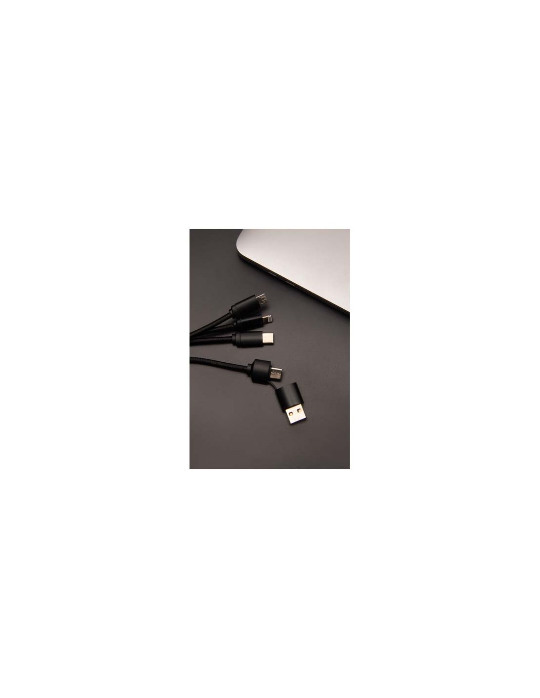 Cavo di ricarica 6 in 1 con struttura in ABS riciclato standard RCS al 100% e cavo da 120 cm in TPE riciclato al 100%. RCS (Recycled Claim Standard) è uno standard per verificare il contenuto riciclato di un prodotto lungo l'intera filiera produttiva. Contenuto totale riciclato: 57% in base al...