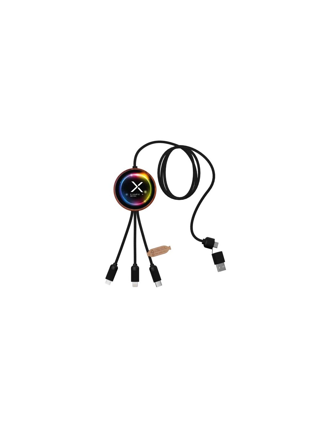 Cavo di ricarica 5 in 1 in rPET riciclato con logo luminoso e stazione di ricarica da 10 W SCX.design C40