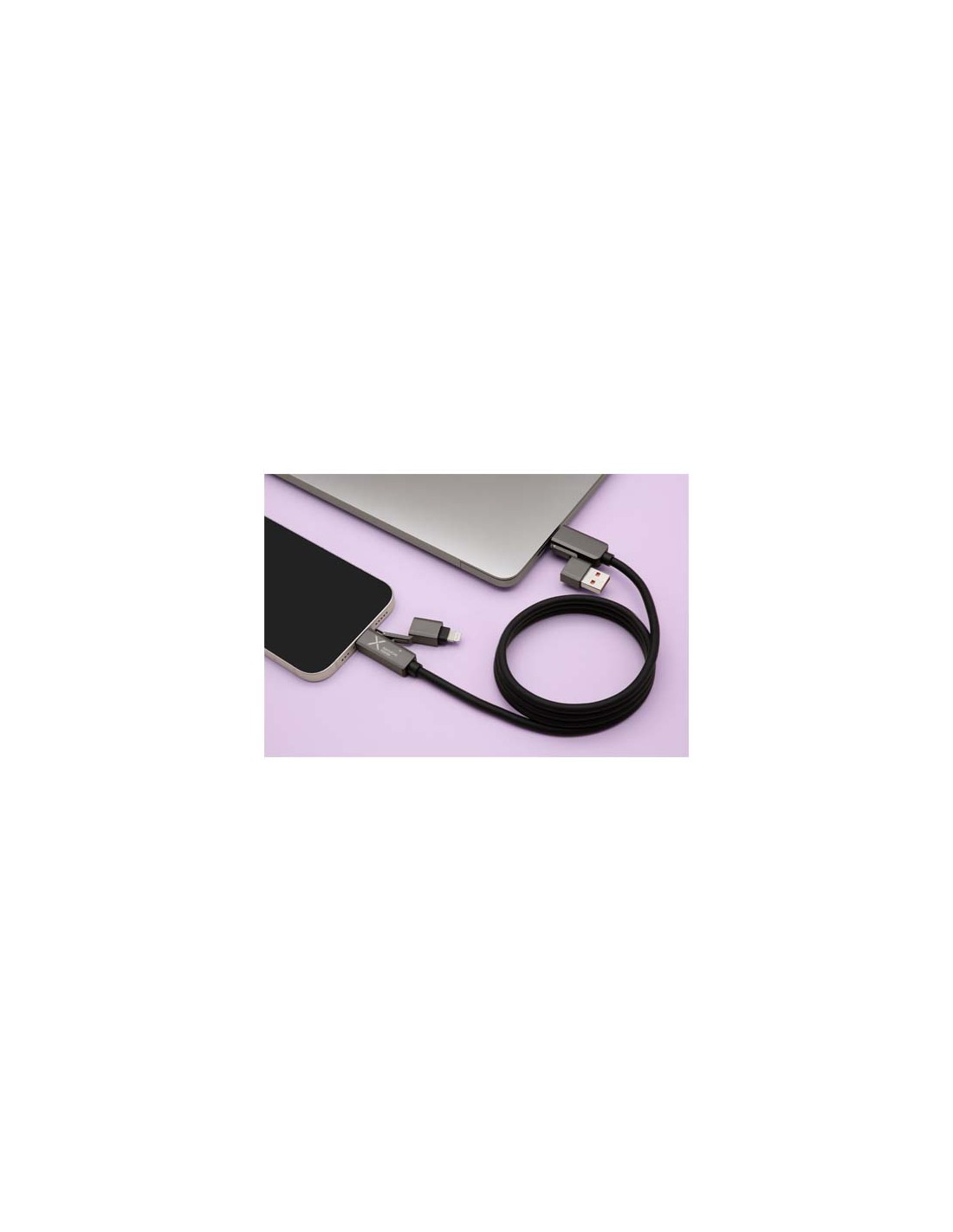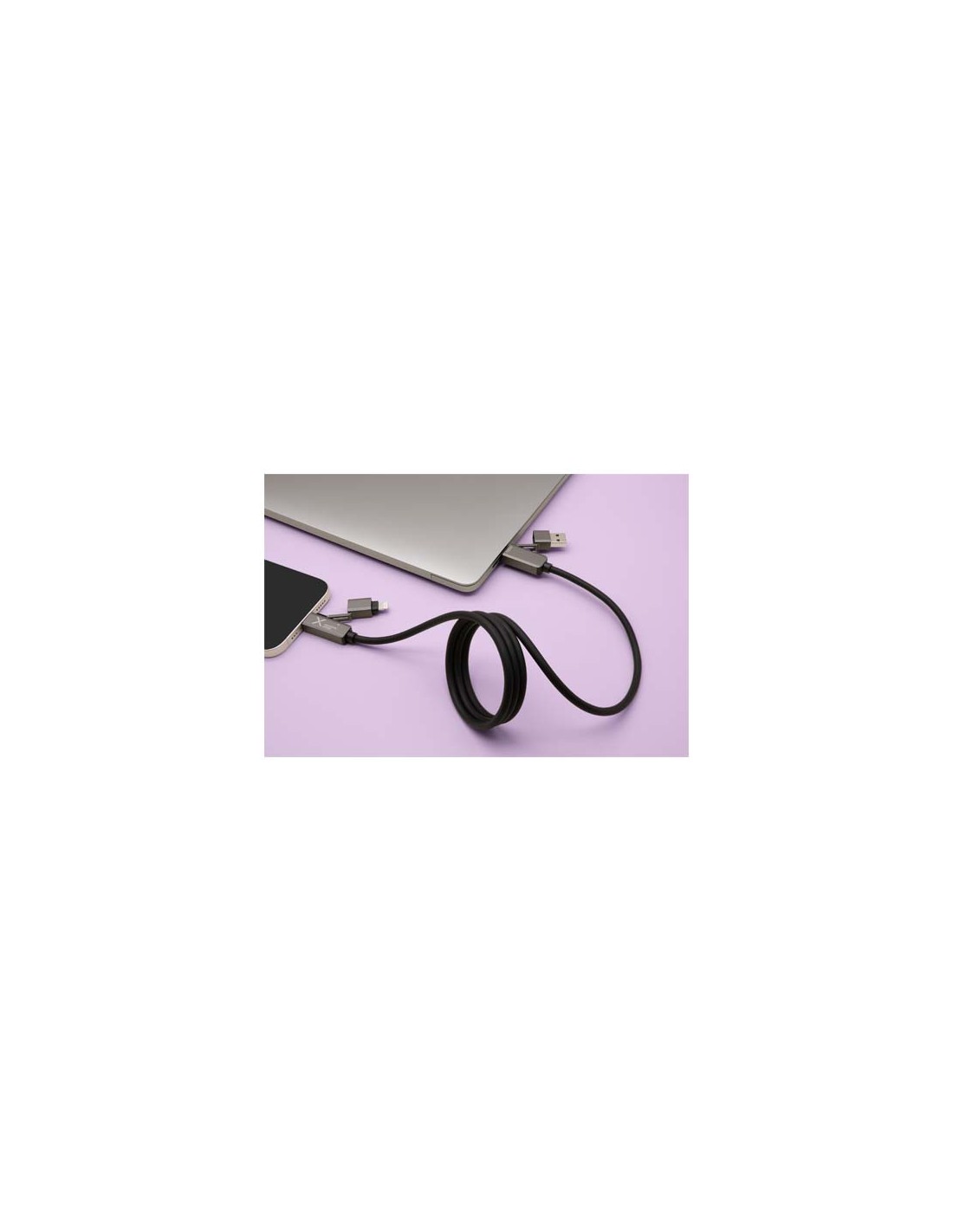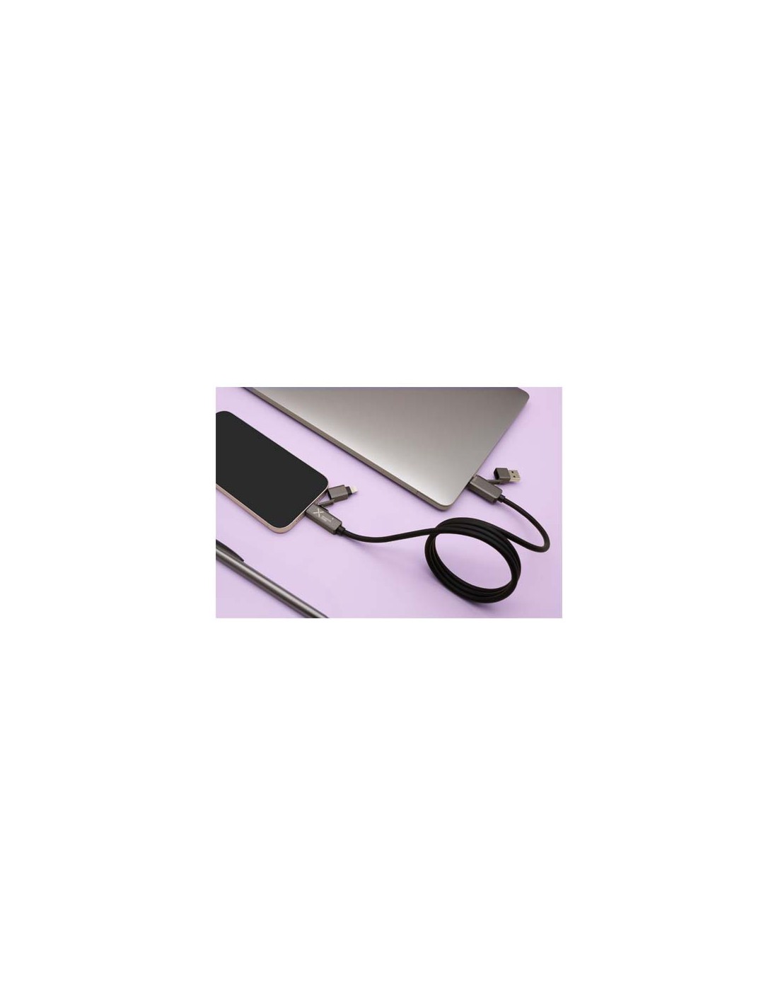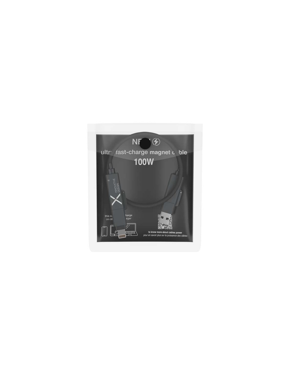 Cavo di ricarica magnetico ultraveloce da 100 W che alimenta smartphone, tablet e portatili. Il cavo piatto da 1 metro è dotato di connettori Tipo-C e Lightning, cavi in silicone riciclato e resistenti terminali in lega di zinco. Grazie a un doppio ingresso USB-A e USB-C, questo cavo è compatibile al 100% con gli ultimi modelli di computer. Completamente compatibile con Apple CarPlay e Android Auto. La personalizzazione è disponibile tramite incisione laser sul terminale in zinco. Fornito con una custodia in TPU riciclabile e un inserto in carta riciclata.