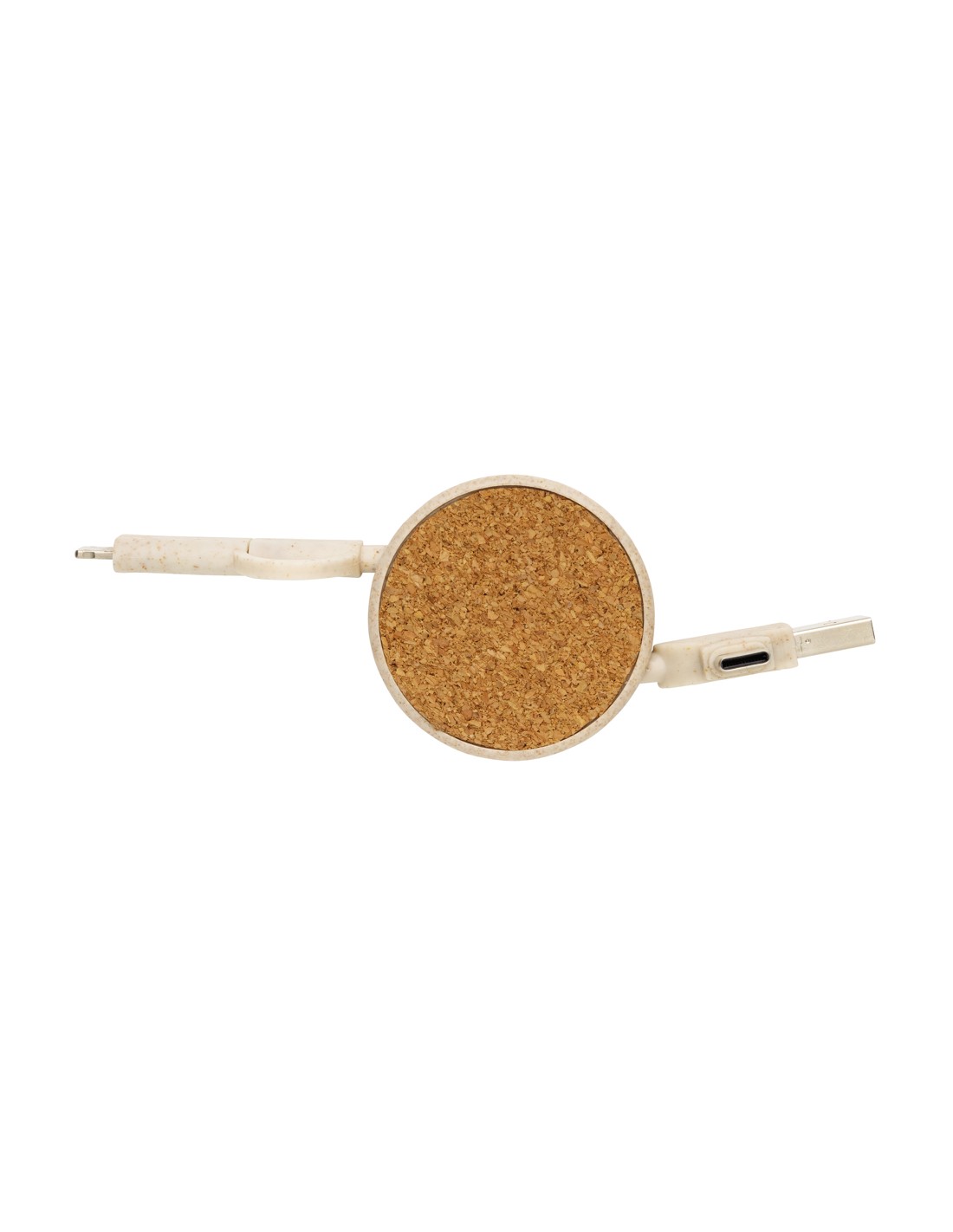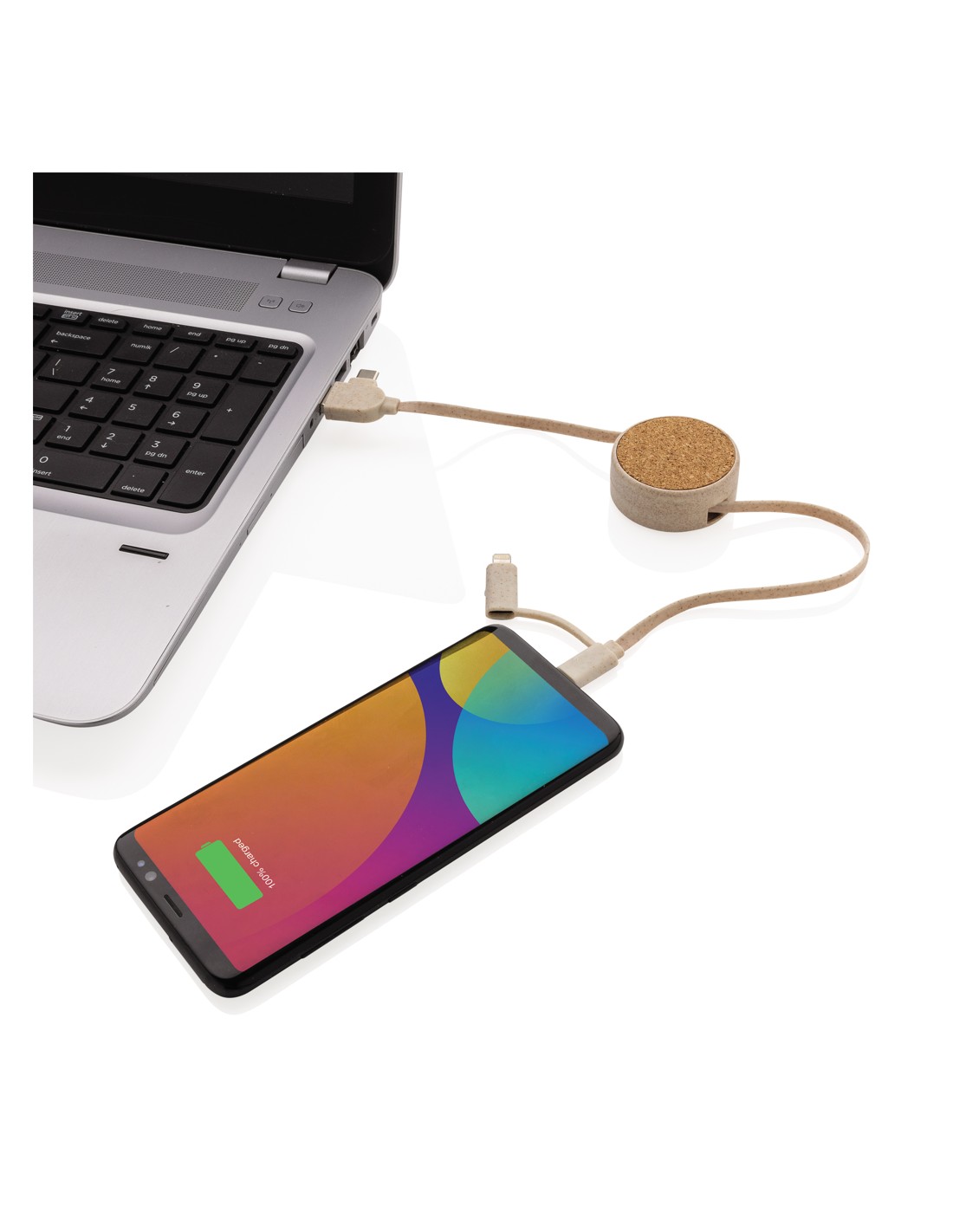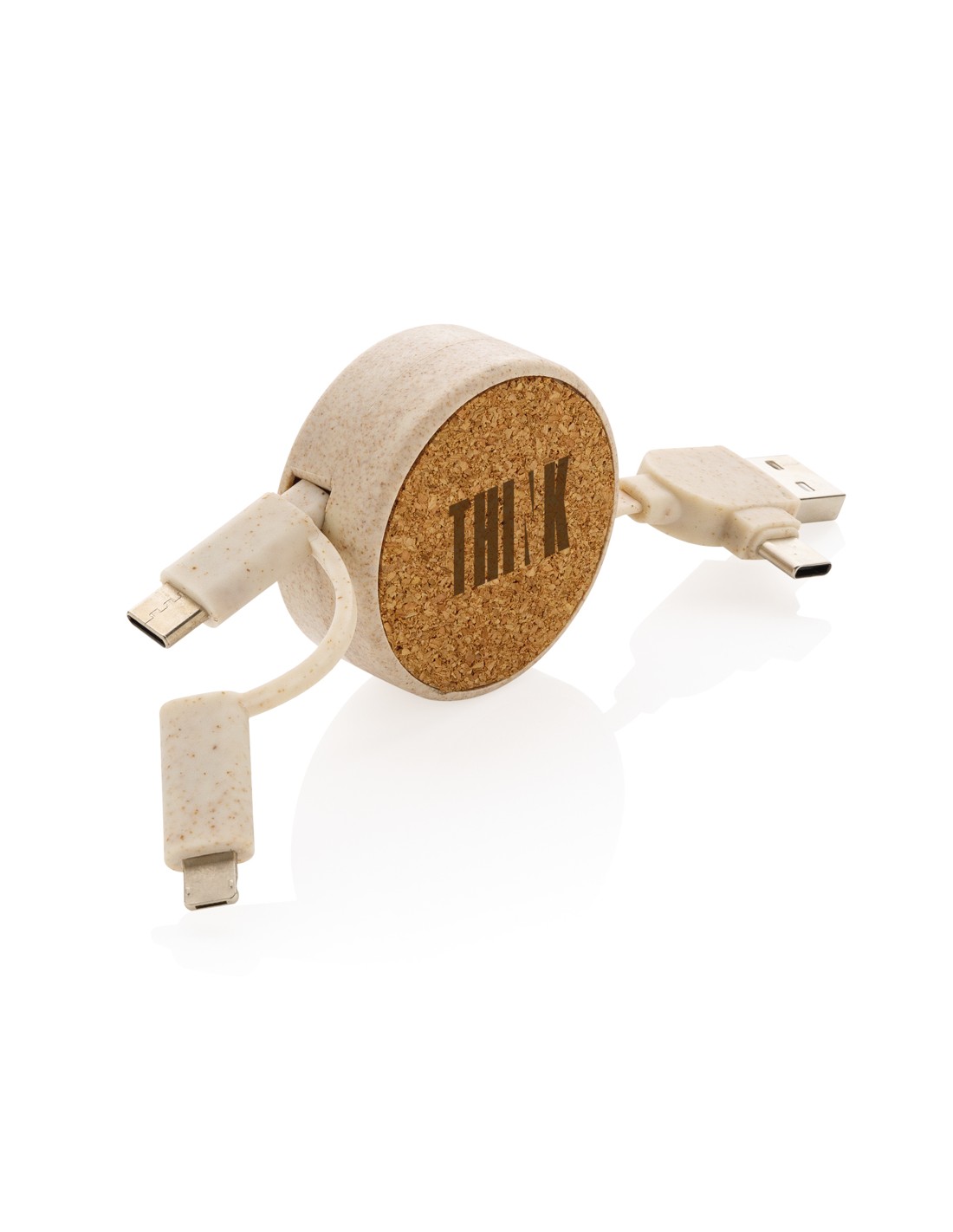 Cavo in bambù 3-in-1, cavo lungo 1 metro e 3 connettori (tipo C, micro USB, iPhone). Può essere decorato con un logo luminoso su entrambi i lati. Fornito in un astuccio in TPU, con un biglietto in carta kraft.