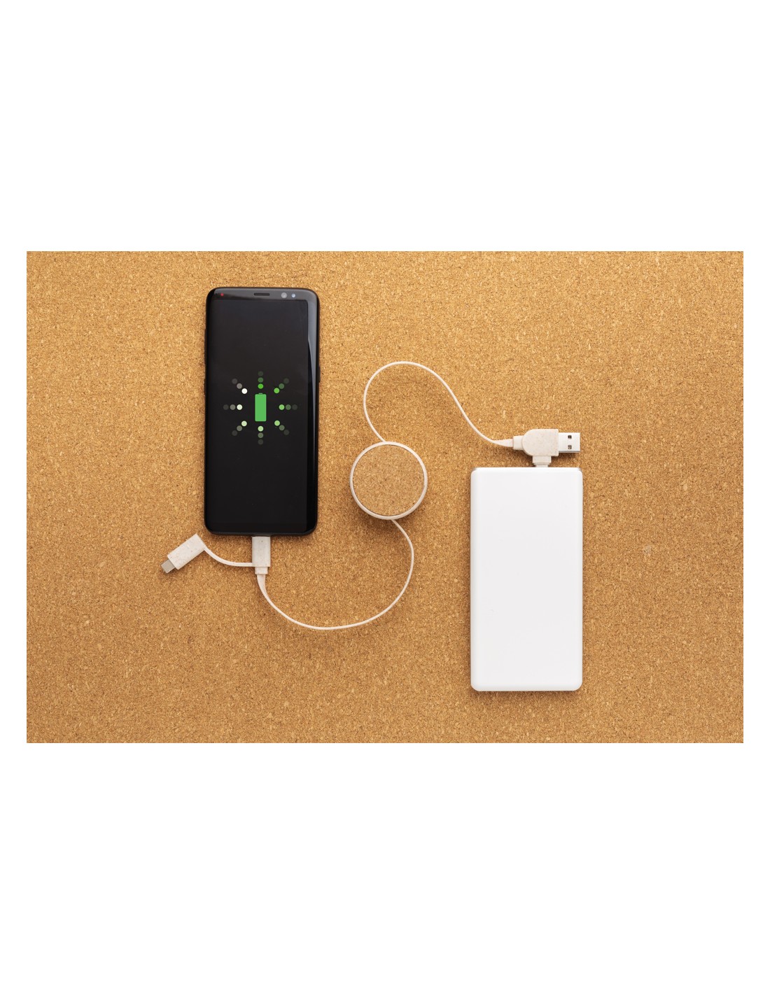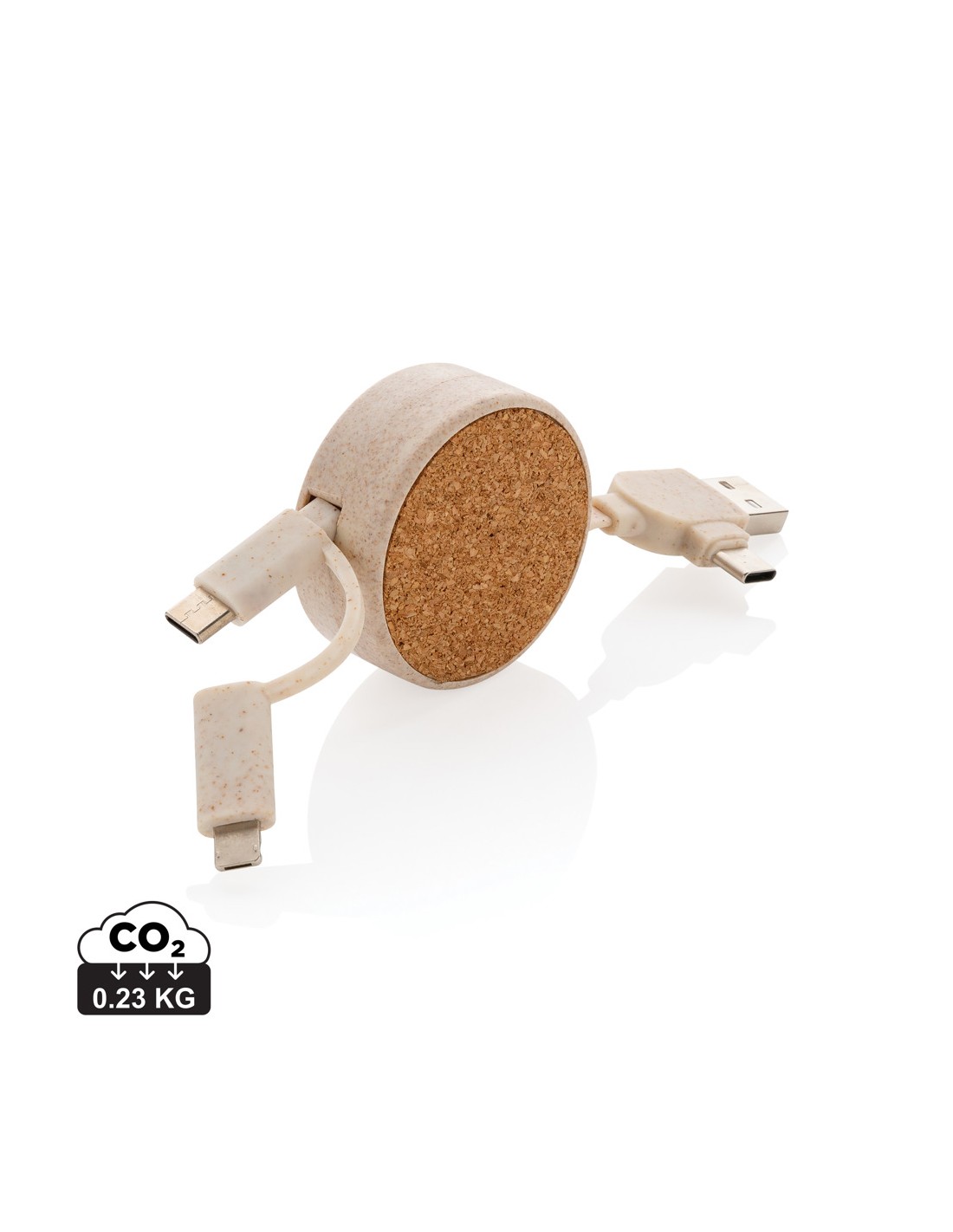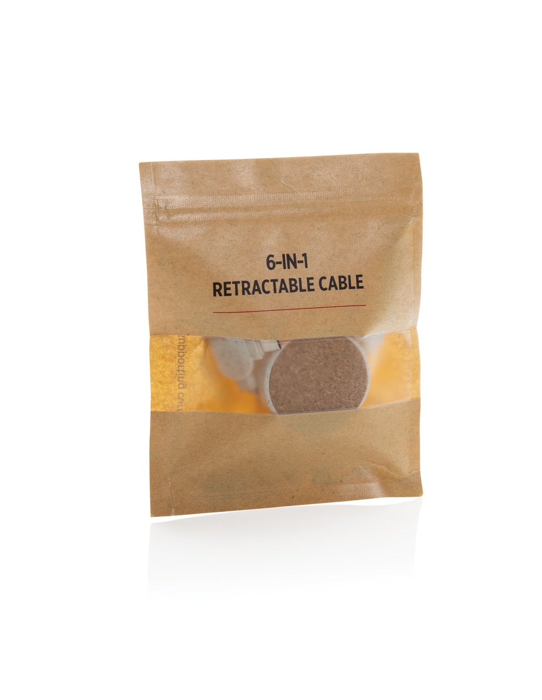 Cavo in bambù 3-in-1, cavo lungo 1 metro e 3 connettori (tipo C, micro USB, iPhone). Può essere decorato con un logo luminoso su entrambi i lati. Fornito in un astuccio in TPU, con un biglietto in carta kraft.