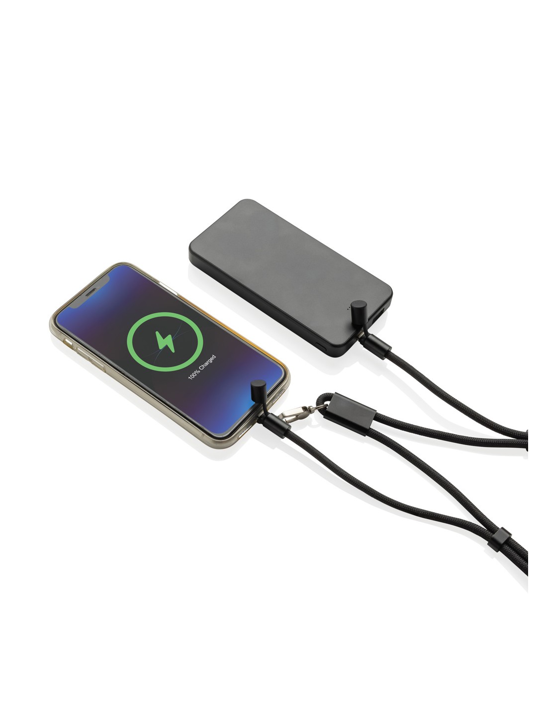 Cavo in bambù 3-in-1, cavo lungo 1 metro e 3 connettori (tipo C, micro USB, iPhone). Può essere decorato con un logo luminoso su entrambi i lati. Fornito in un astuccio in TPU, con un biglietto in carta kraft.