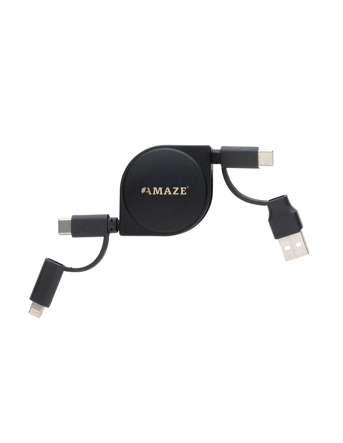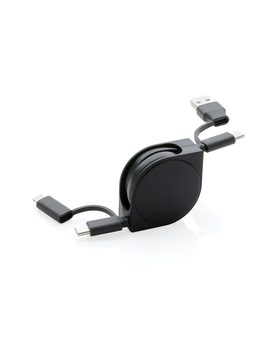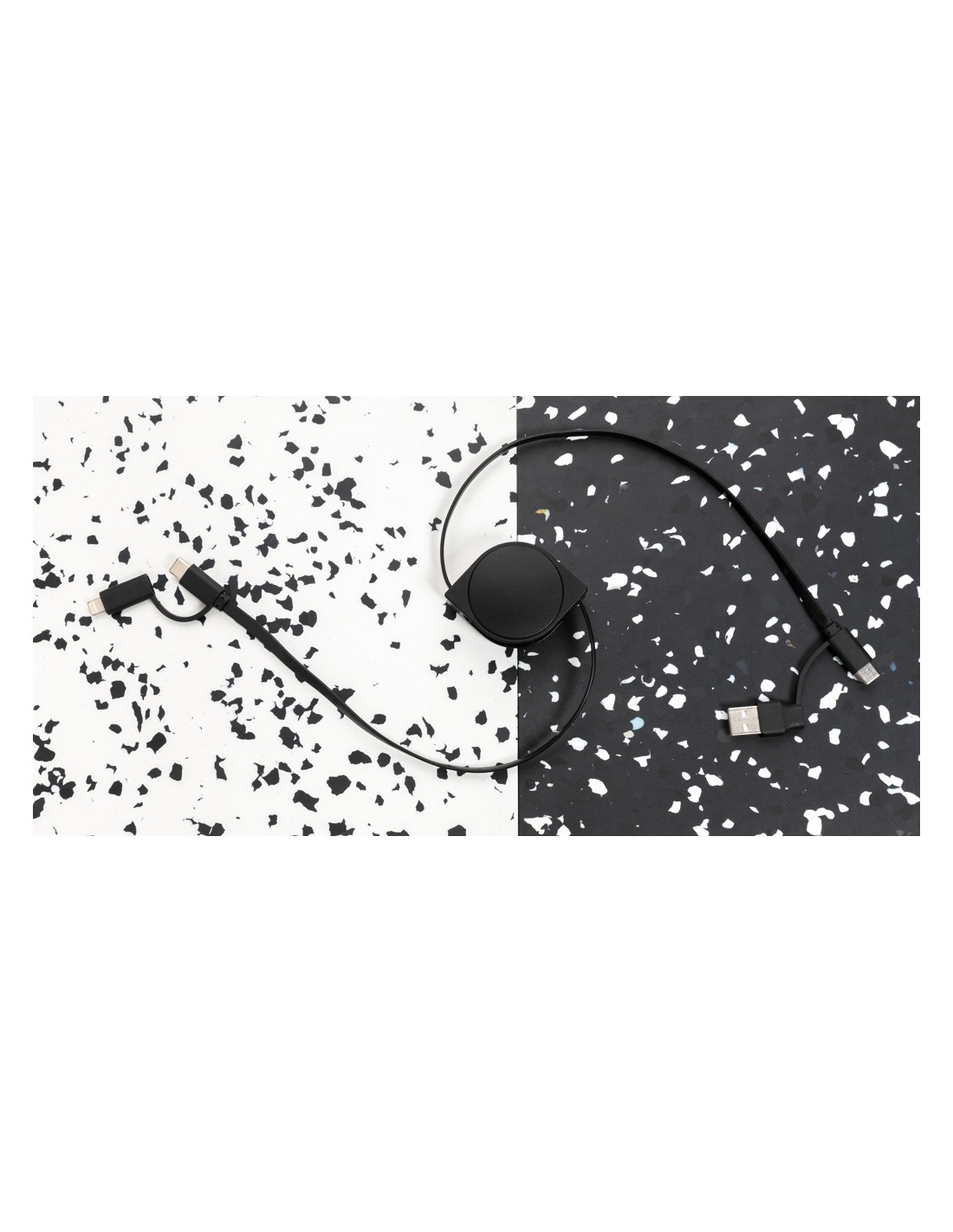 Cavo di ricarica portachiavi 4 in 1 in alluminio riciclato con un'uscita massima di 10 W. Grazie ai connettori di ingresso di Tipo-C e USB-A combinati con i connettori di uscita combinata di Tipo-C e Lightning/Micro USB (supportano i dispositivi Apple iOS e Android), è possibile caricare la...