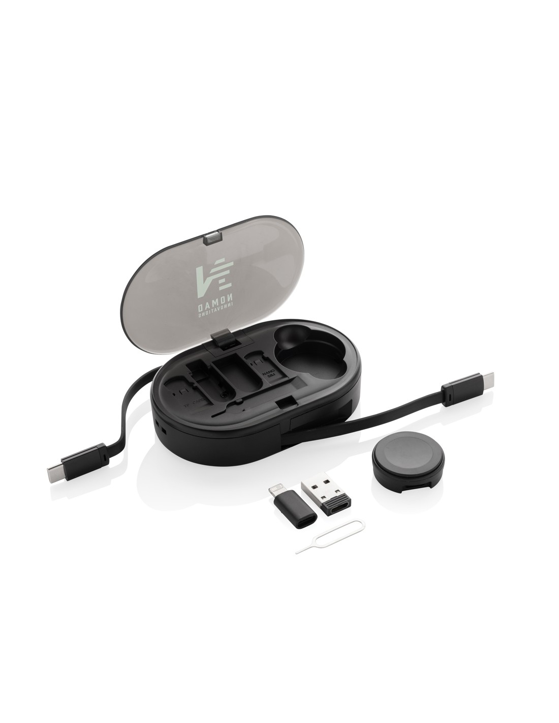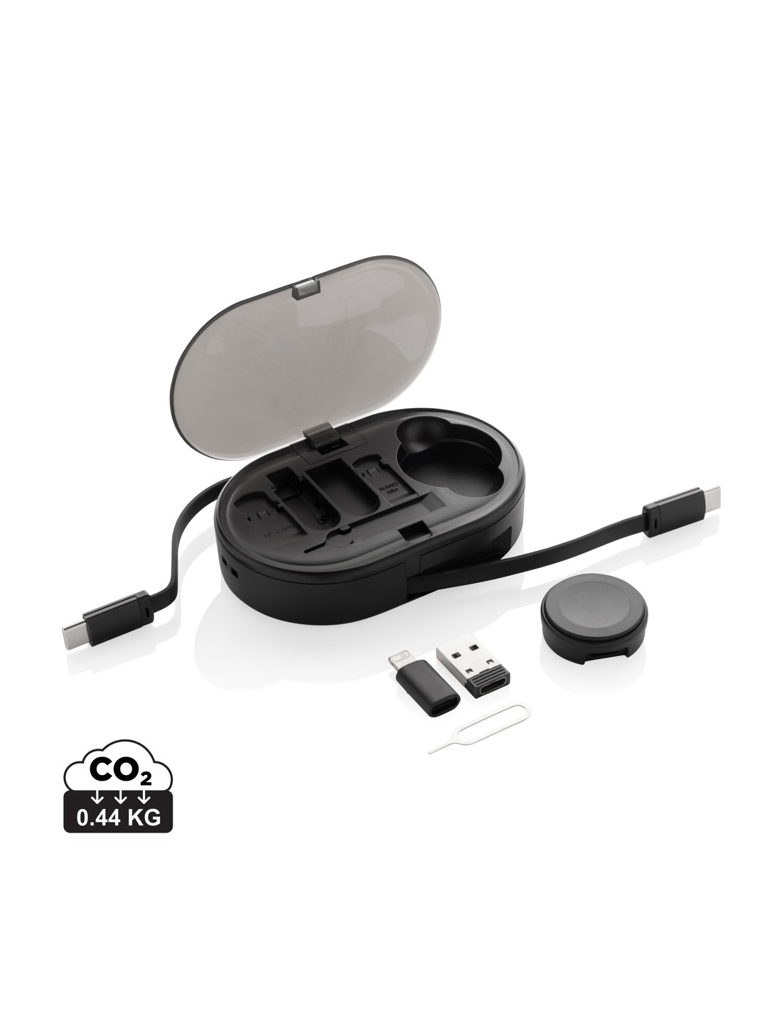 Il cavo Citala 5-in-1 per la sincronizzazione dei dati e la ricarica rapida da 27 W è realizzato in plastica riciclata. Il cavo è caratterizzato da connettori di ingresso USB-A e di Tipo-C abbinati a un connettore di uscita combinata di Tipo-C e Lightning/Micro USB. La connessione da USB-A a...