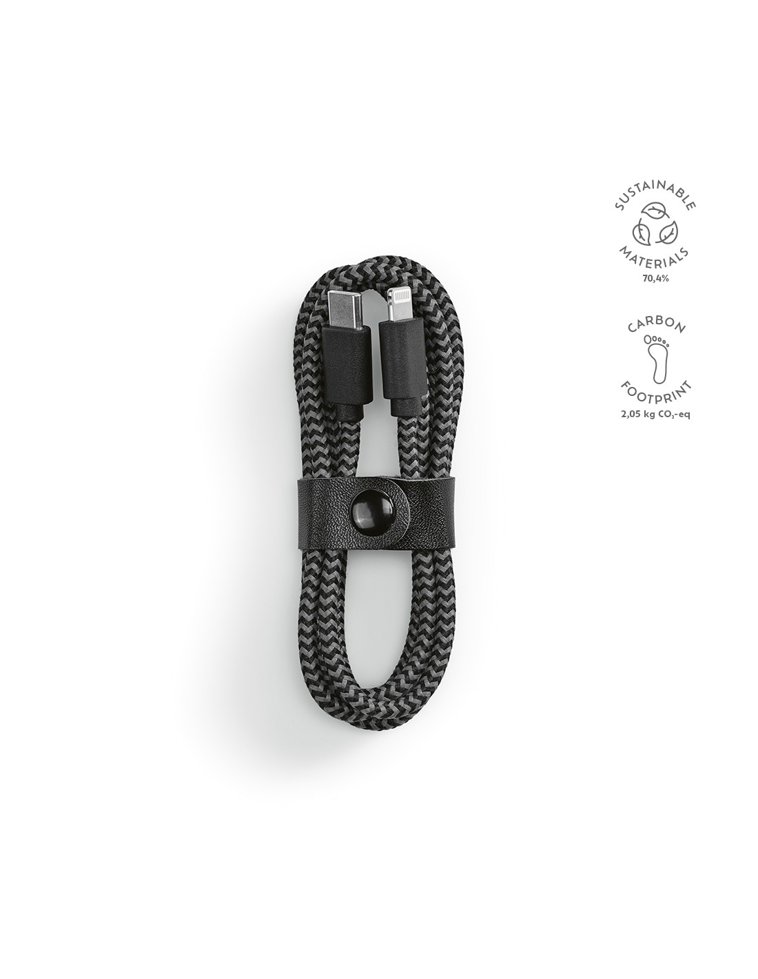 Cavo di ricarica con logo luminoso, finitura in gomma e dotato di tre connettori (tipo C, Android, iPhone). È possibile caricare fino a tre dispositivi contemporaneamente. Lunghezza dei cavi (spine incluse): 10 cm. Cavo in plastica PET riciclata ed'imballaggio realizzato in carta e plastica...