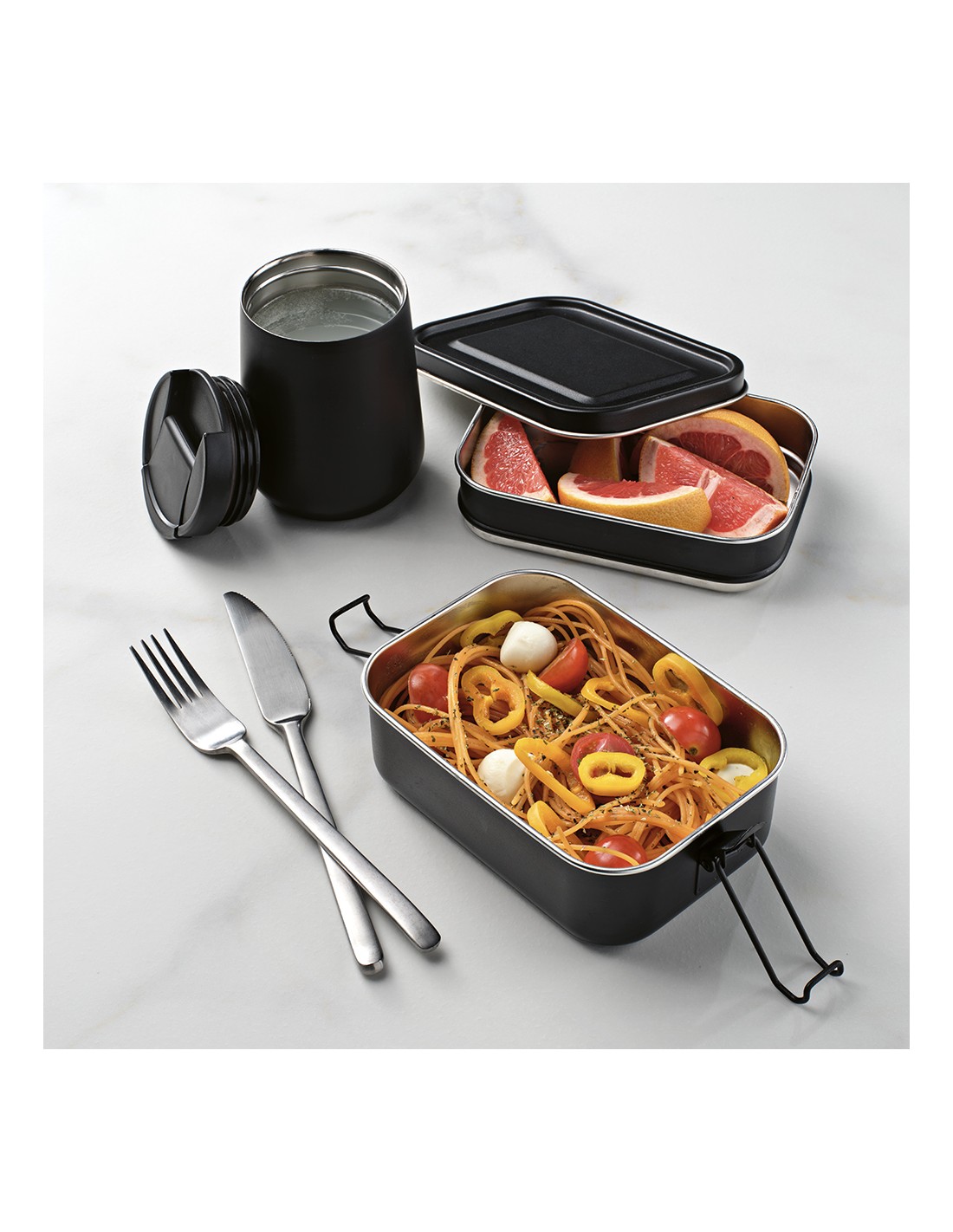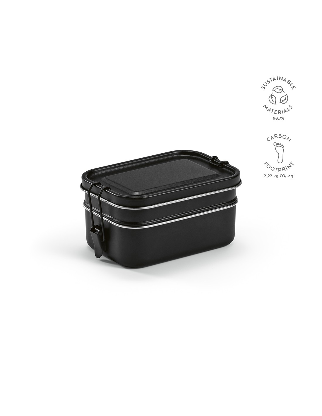 Box pranzo Tintoretto ha una capacità totale di 1240ml (1050ml netti) con chiusura a fibbie laterali. I due scomparti permettono di portare i tuoi piatti preferiti al lavoro o in picnic. Disponibile in 3 colori: verde pastello, azzurro pastello e nero, tutti con finitura opaca. Confezionato singolarmente in una scatola kraft.