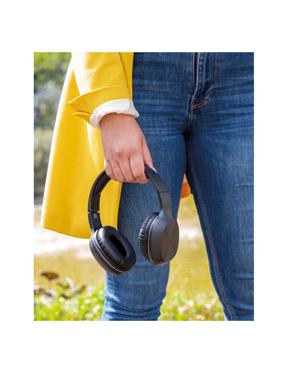 Cuffie con logo luminoso, trattamento antibatterico e funzione soft-touch, tecnologia Bluetooth® 5.0 EDR (Enhanced Data Rate), radio integrata e batteria di emergenza. Dotate di microfono incorporato che consente le conversazioni telefoniche. Fornite con un connettore audio per collegare...