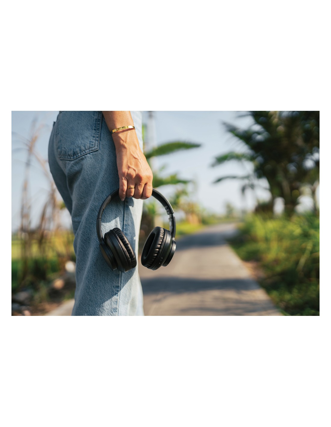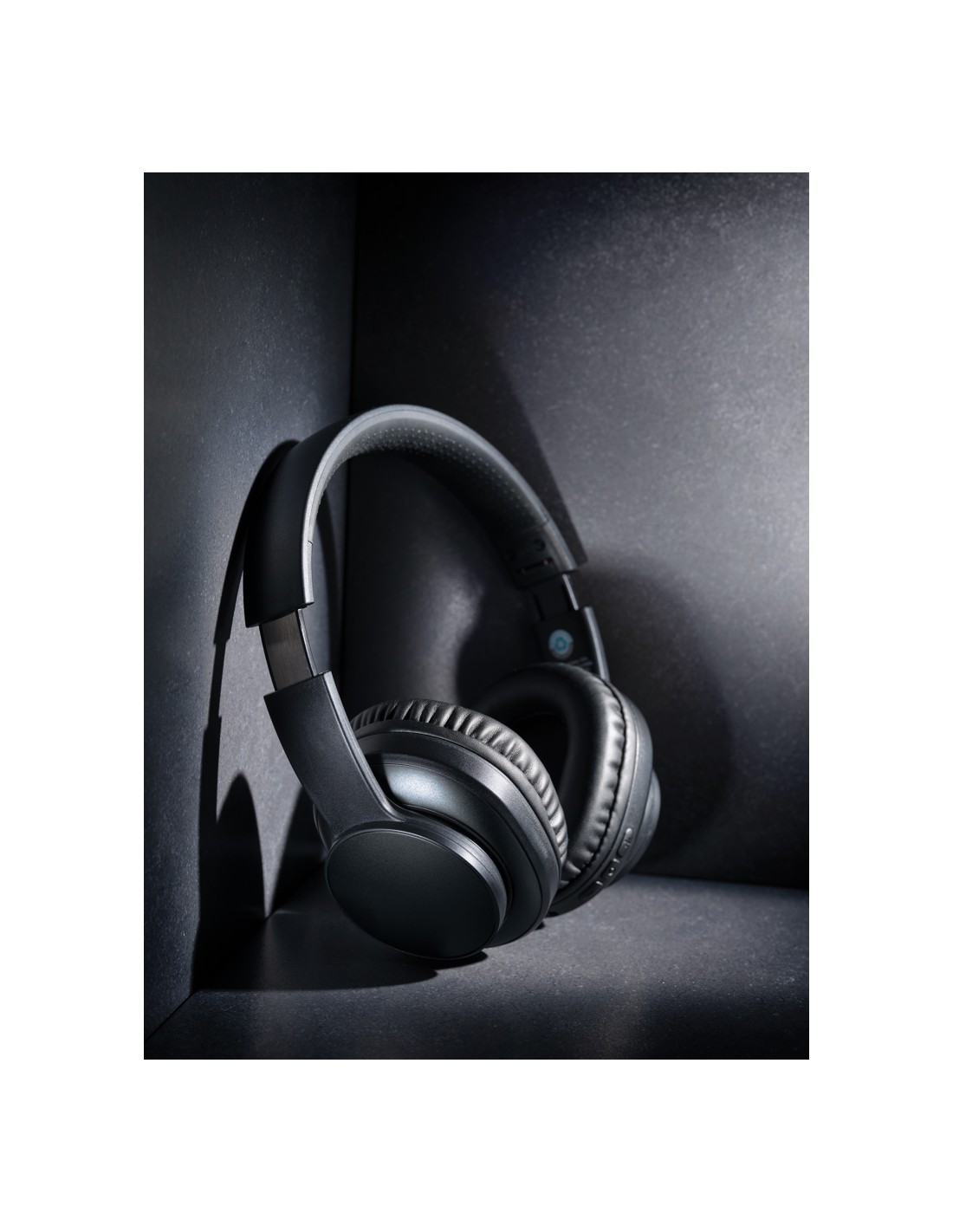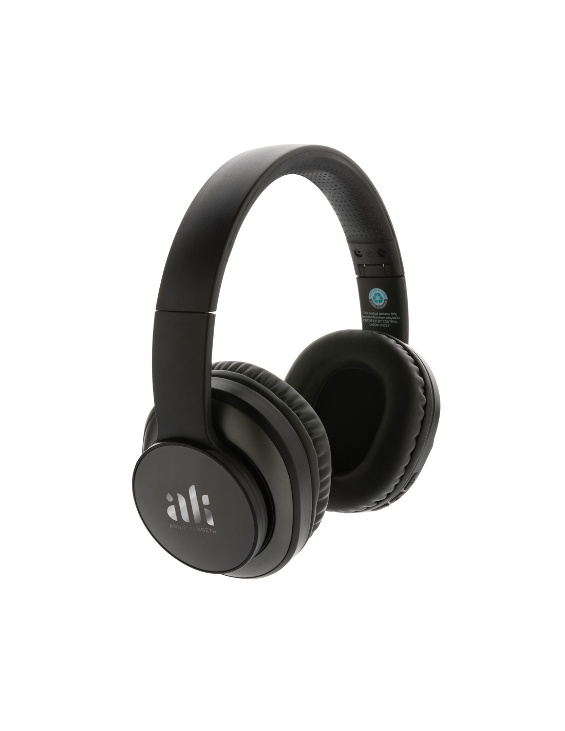Cuffie wireless pieghevoli con bassi potenti. Realizzate con alluminio riciclato certificato RCS (Recycled Claim Standard) e ABS. Contenuto totale riciclato: 70% in base al peso totale dell'articolo. La certificazione RCS garantisce una filiera completamente certificata dei materiali riciclati. L'alluminio non perde le sue caratteristiche nel processo di riciclaggio e può essere riciclato all'infinito. Compreso di cavo di ricarica type C in alluminio riciclato certificato RCS, TPE e PET. La batteria da 600 mAh consente una riproduzione fino a 15 ore e può essere ricaricata completamente in 2 ore. Con BT 5.3 per un collegamento fluido fino a 10 metri. Confezionato in confezione FSC® mix. Articolo e accessori 100% senza PVC. Include microfono per rispondere alle chiamate.