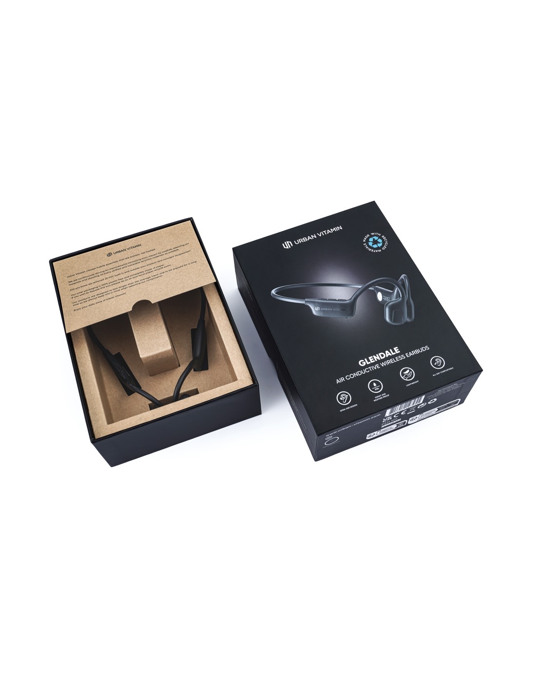 Vi presentiamo Glendale, la cuffia più avanzata e tecnologica di sempre. Glendale cambia il modo di ascoltare la musica e di allenarsi. L'esclusivo design aperto permette di non inserire gli auricolari nell'orecchio, ma di accostarli ad esso, creando una continua consapevolezza della situazione quando si è all'aperto. Il tutto con un suono di qualità superiore e bassi potenziati. Sono impermeabili IPX4 e quindi adatti a qualsiasi tipo di allenamento. Le cuffie, comode e leggere, sono perfette sia per l'uso quotidiano che per gli allenamenti. La batteria garantisce un'autonomia di 10 ore con una sola carica. In caso di chiamata in arrivo, è sufficiente rispondere con il microfono integrato. Glendale è realizzato con ABS riciclato certificato RCS (Recycled Claim Standard). Contenuto riciclato totale: 17% in base al peso totale dell'articolo. La certificazione RCS garantisce una catena di approvvigionamento dei materiali riciclati completamente certificata. Gli articoli Urban Vitamin sono