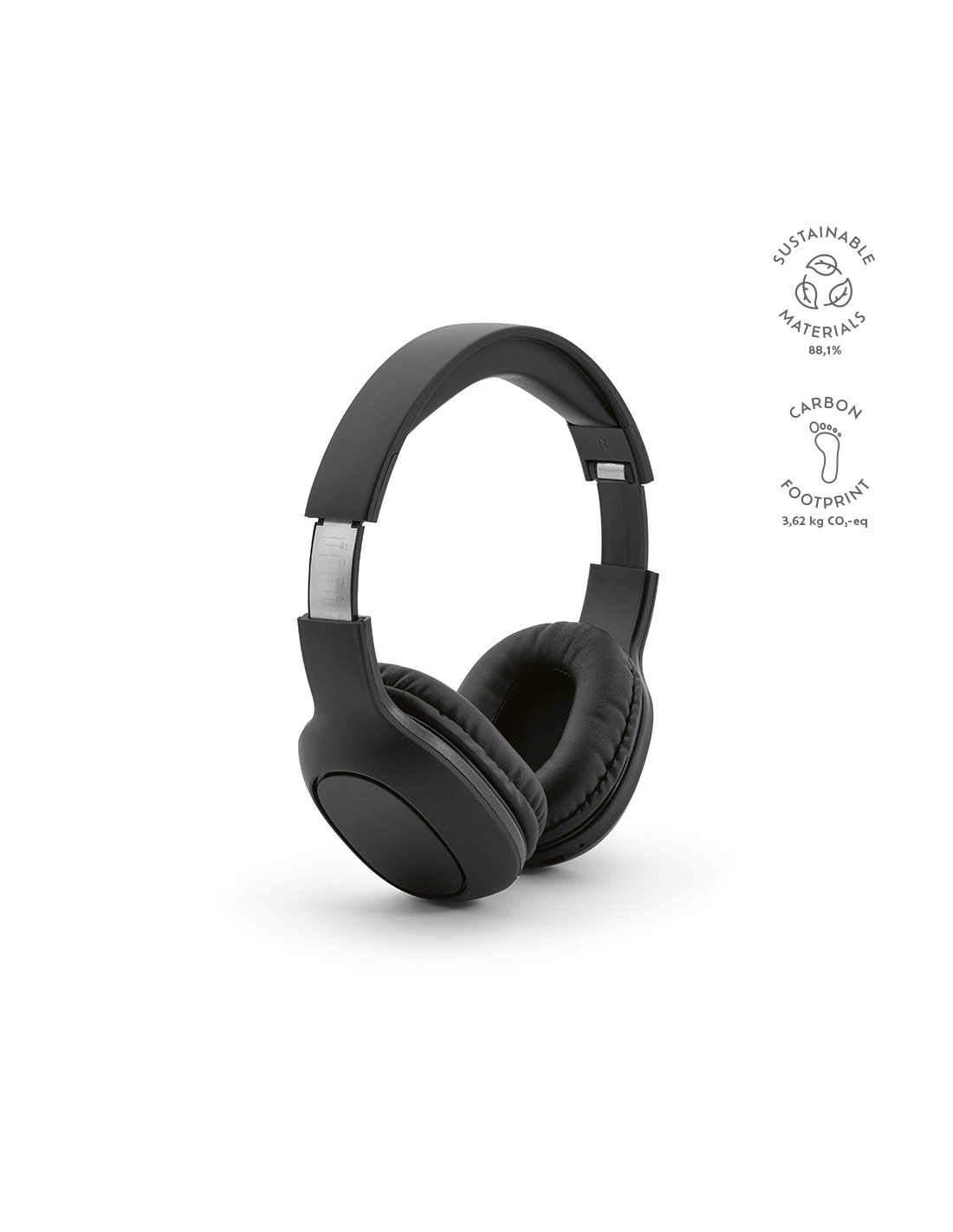 Cuffia pieghevole senza fili 5.0 in ABS. Il tutto presentato in una borsa con coulisse di cotone da 140 gr/m². Batteria ricaricabile Li-Pol 200 mAh. Funzione vivavoce e microfono incorporato. Tempo di autonomia di circa 4 ore. Include cavo di ricarica Type-C. Raggio d'azione: 10 m.
